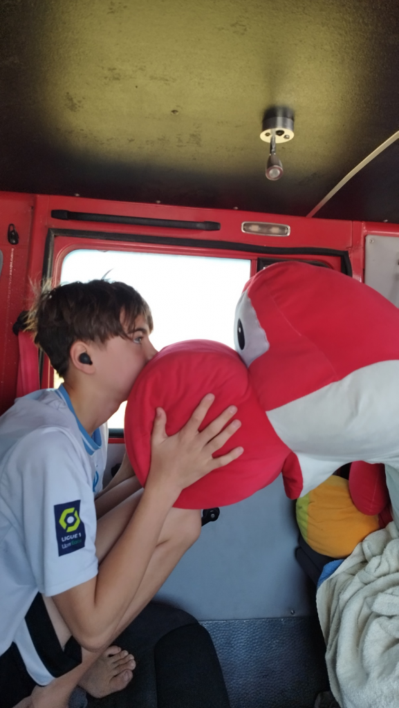 Marius hat Joshi einen Tag vor unserer Reise beim Schützenfest in Coburg gewonnen. Er reiste von Anfang an mit uns, obwohl er keinen Reisepass hat. Marius liebt ihn immer noch.