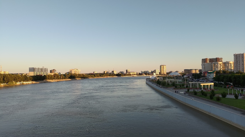 Der Ural ist ein besonderer Fluss, zusammen mit dem Ural Gebirge, dem kaspischen Meer, dem Kaukasus und dem Schwarzen Meer, ist er Teil der Grenze, die Europa und Asien teilt. Wir parkten mit Fritzchen noch in Asien, aber bei unserem Abendspaziergang haben wir natürlich eine der Brücken überquert, um in Europa anzukommen.