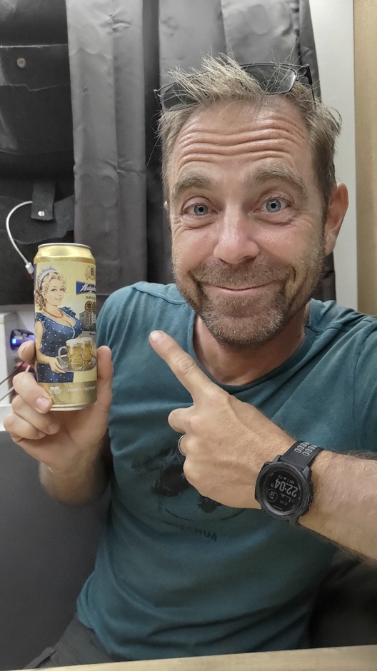 Als er dann wieder bei uns ankam, musste er seine Frust mit einem lokalen Bier löschen. Er meinte, es hatte das Design auf der Dose wirklich nötig, es war nicht sehr lecker.