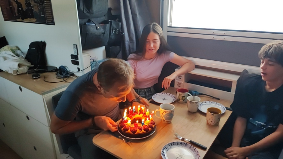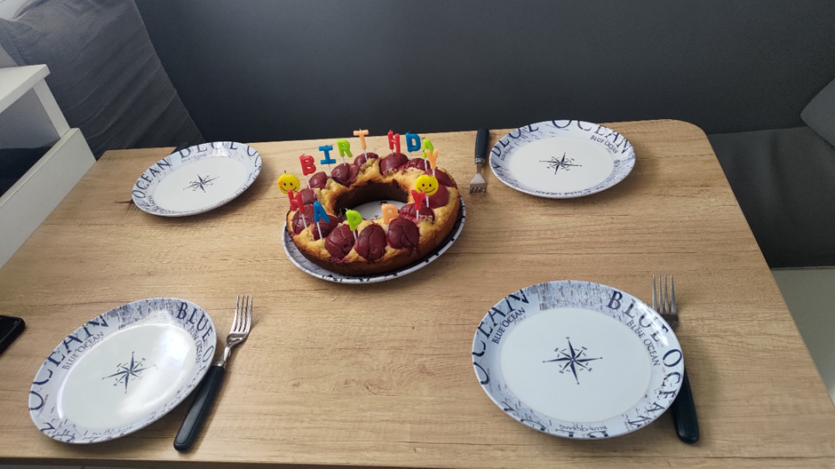 Am Nachmittag hat Mira dann Marcs Geburtstagskuchen gebacken. Während des Backens hat sie nicht gemerkt, dass das Ladekabel von unseren Garmin Uhren im Feuer lag. Es ist leider komplett zerschmolzen. Zum Glück haben wir ein zweites, aber wir werden versuchen, hier in Dubai noch eins zu besorgen.