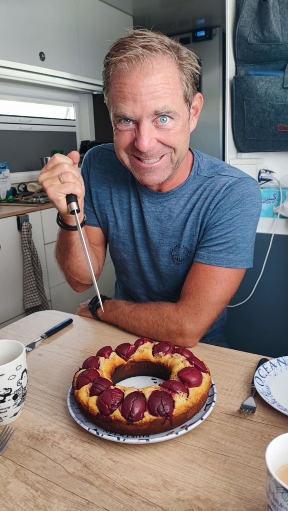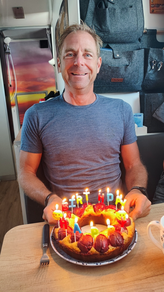 Wir haben die Nacht auf dem Parkplatz der Mall verbracht. Am nächsten Morgen hat Marc endlich seinen Geburtstagskuchen genießen können. Es gab einen sehr leckeren Pflaumenkuchen, den wir zum Frühstück bis zum letzten Brösel vertilgt haben.