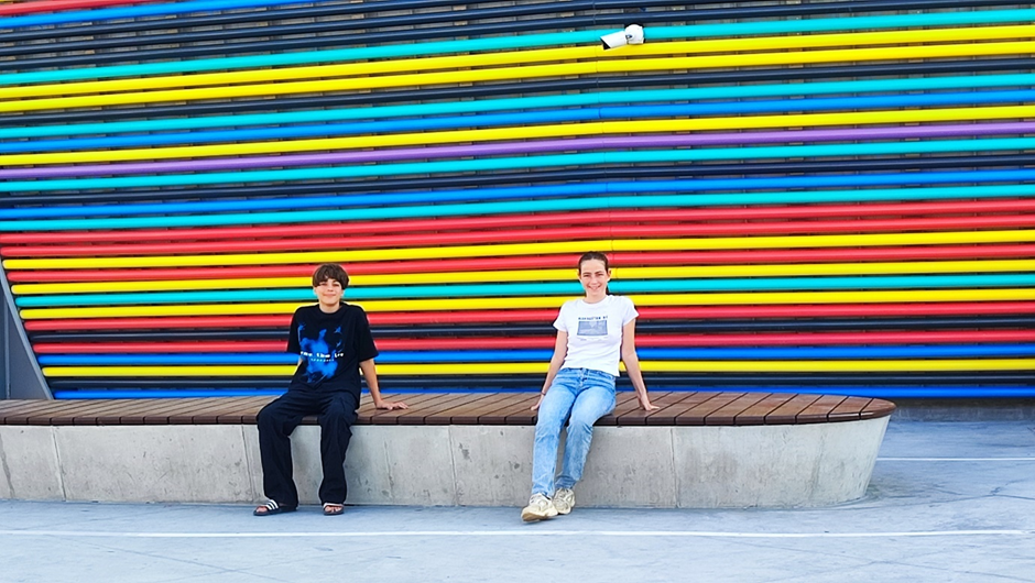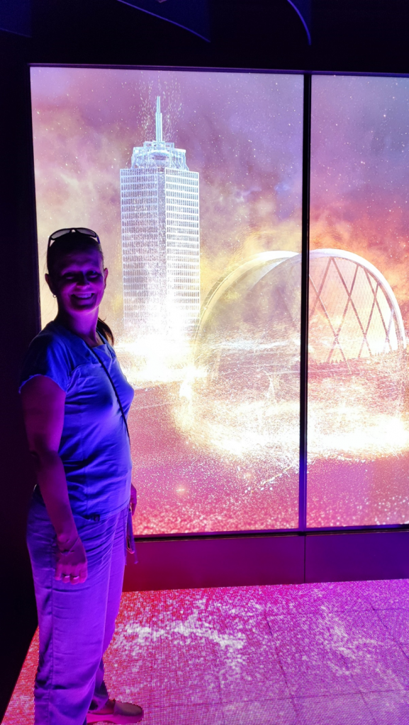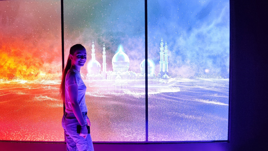 Danach konnten wir die Wahrzeichen der Emirate an einer interaktiven Wandleinwand selber hinzaubern.