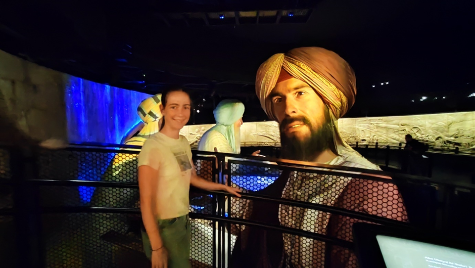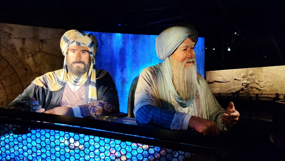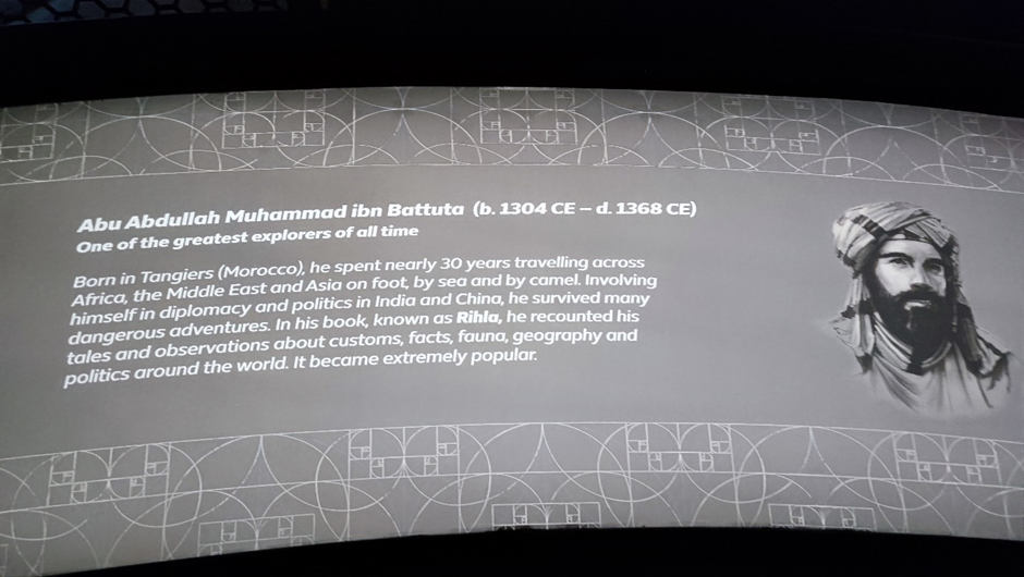 Drinnen hat uns eine unglaublich tolle und modere Ausstellung erwartet, die die Geschichte der Mobilität der Menschheit darstellte. Wir haben in der Vergangenheit bei großen Entdeckern wie Ibn Battuta angefangen.