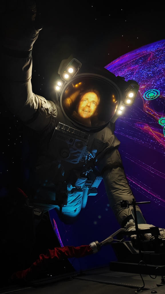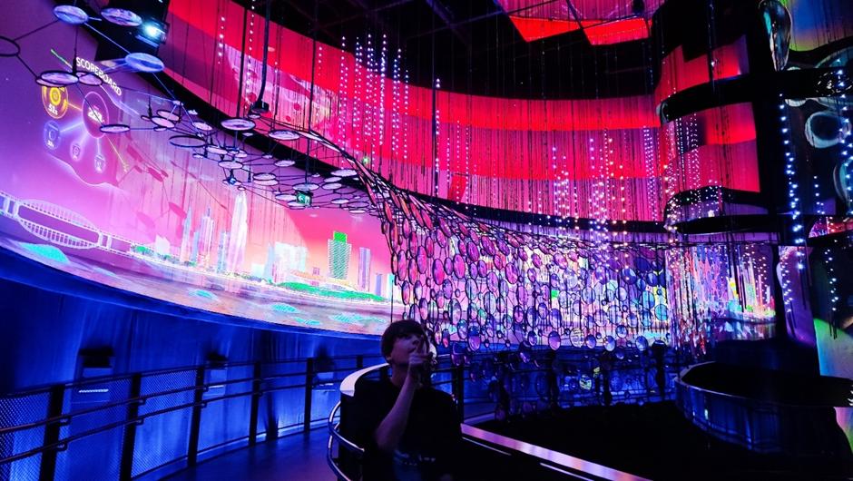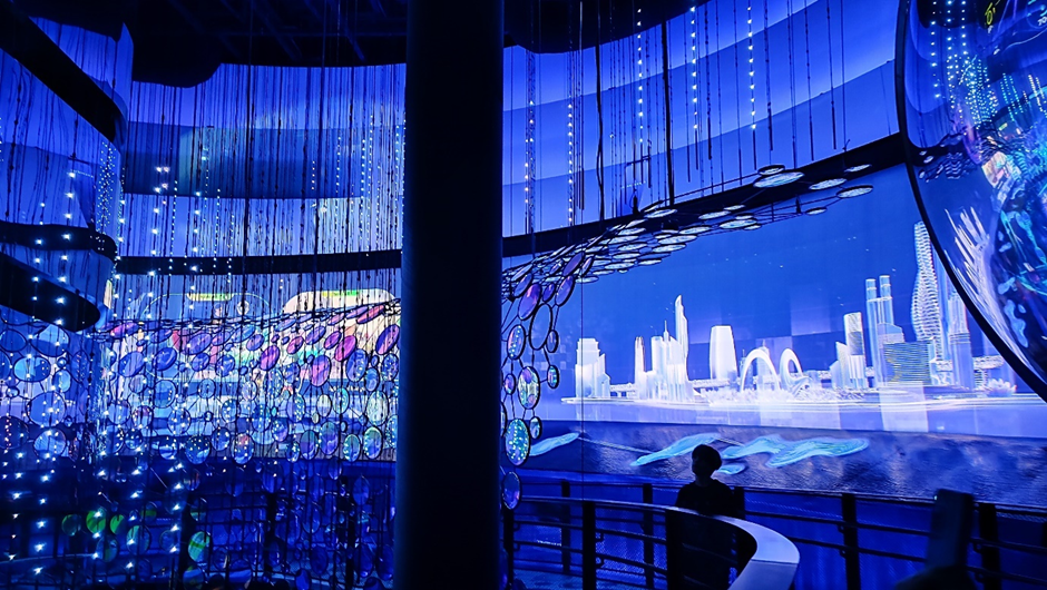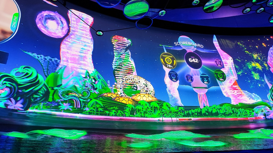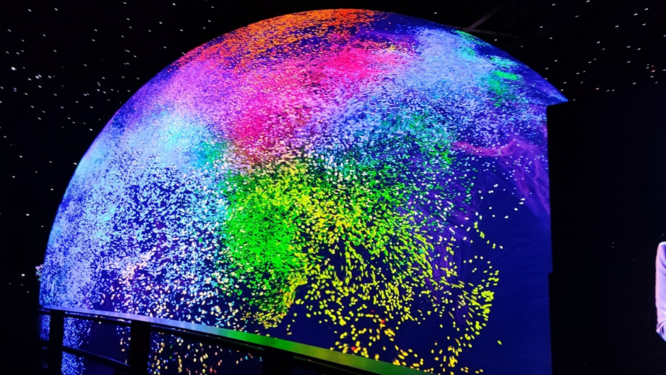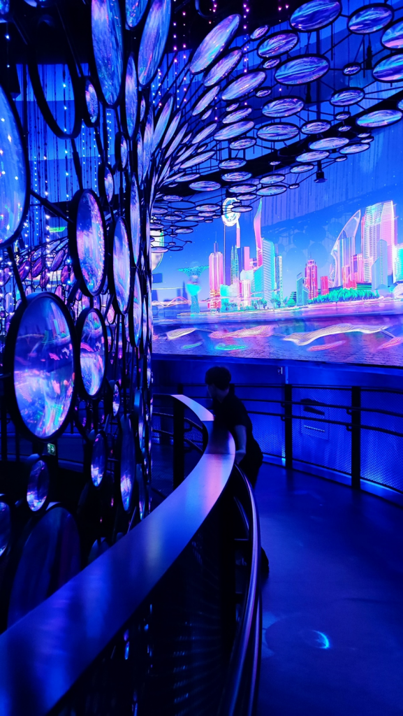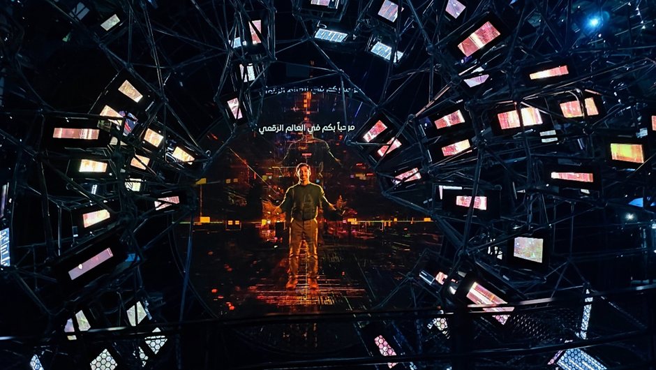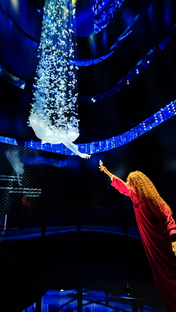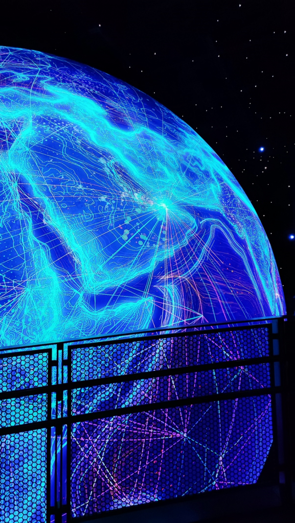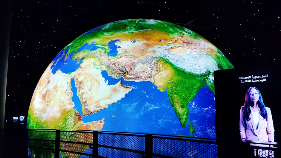 Der nächste Raum hatte eine riesige Projektion der Erde (eine der Größten der Welt), worauf die Verbindungen von den Emiraten und der ganzen Erde in der realen und der digitalen Welt gezeigt wurden.