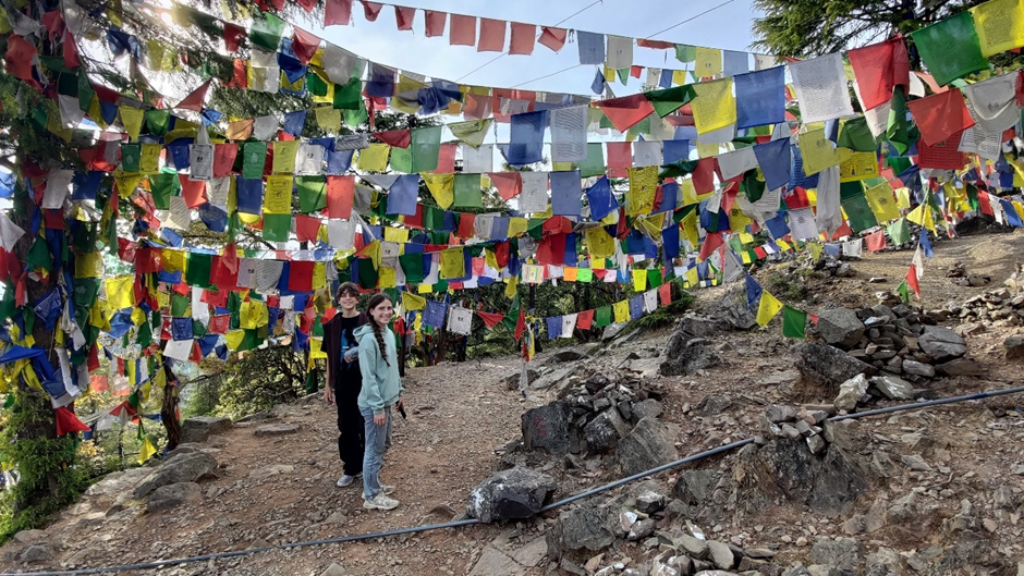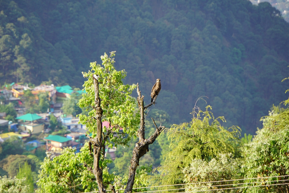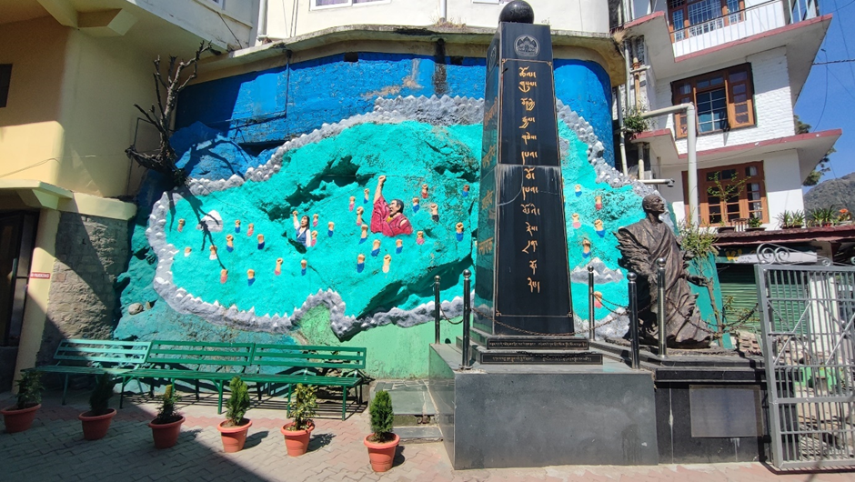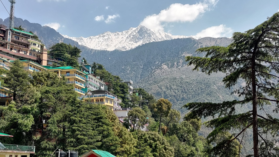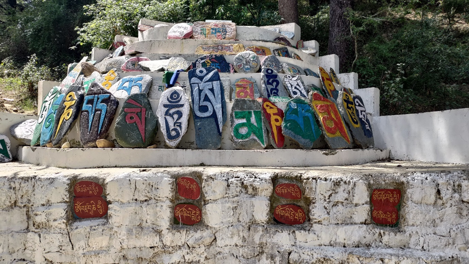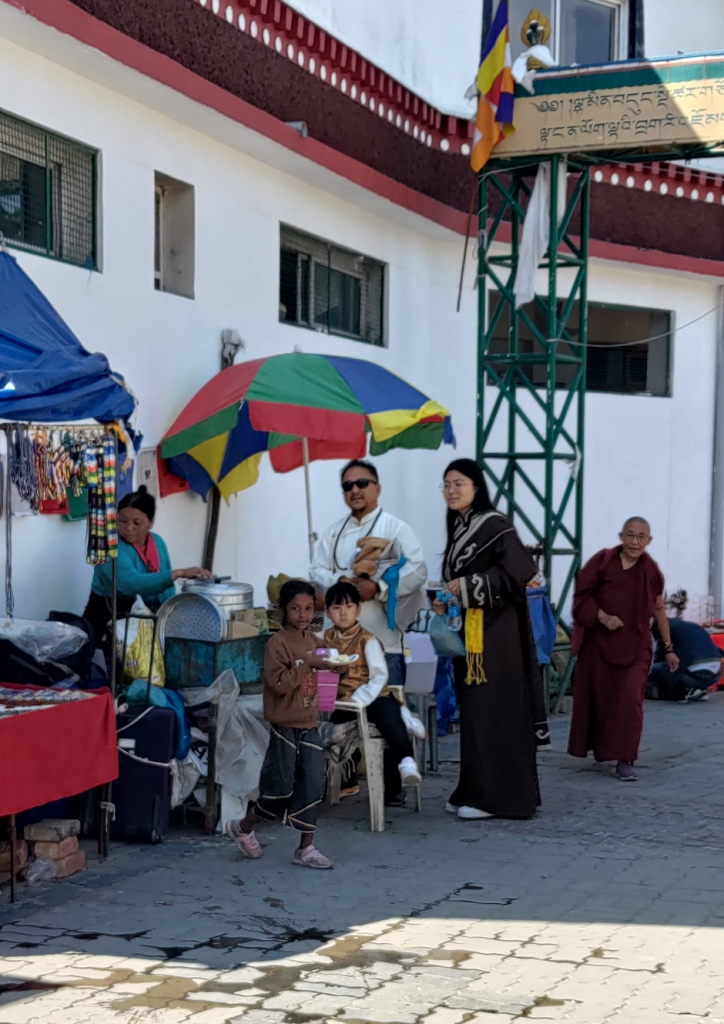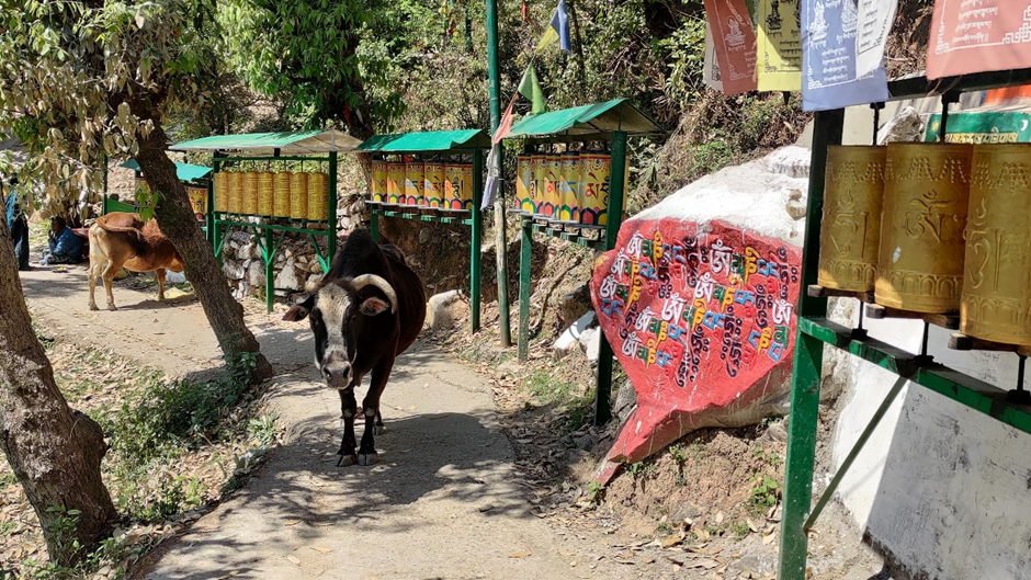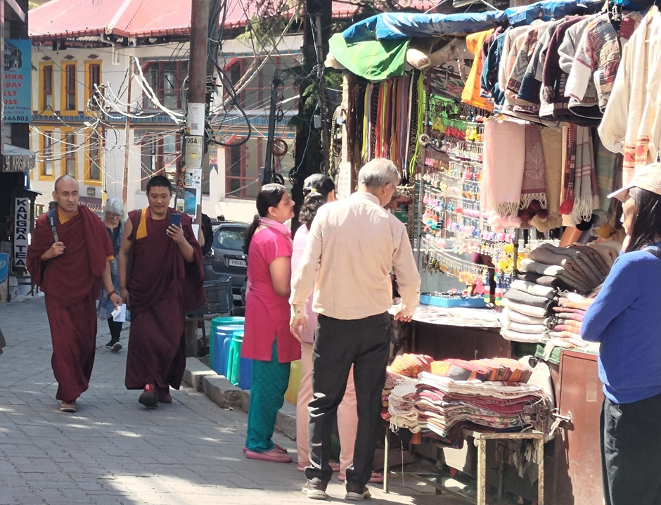 Wir sind auf einem malerischen Weg nach Gangchen Kyishong gelaufen. Der Pfad war begleitet von vielen Gebetsmühlen und Gebetsfahnen. Wir hatten auch einen wunderschönen Ausblick auf die nahen Berge und auf das Tal mit Dharamsala.