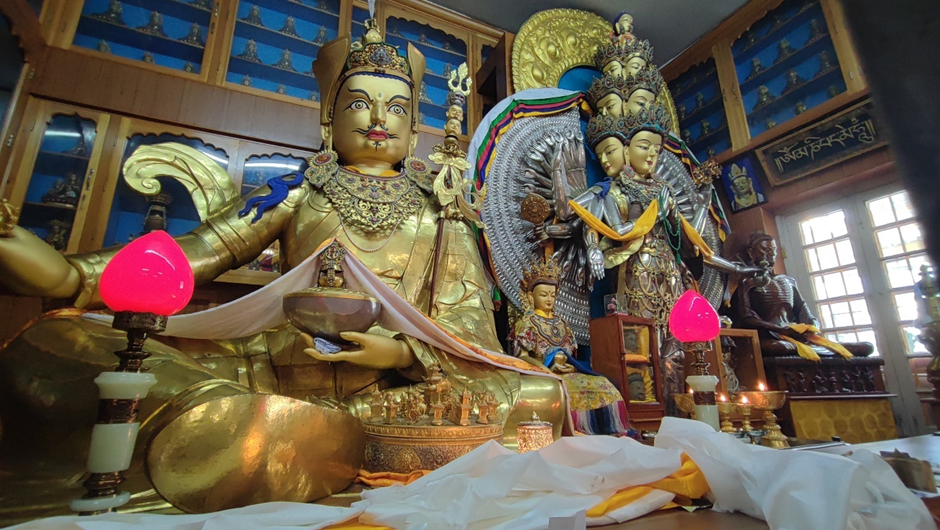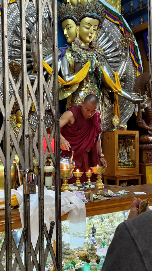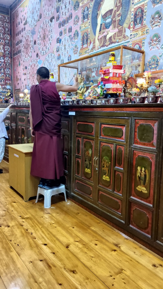 Wir sind zum Tsuglagkhang Complex gelaufen, der Dalai Lamas zu Hause ist. Seine Residenz kann man nicht besuchen, aber 2 farbenfrohe Tempelzimmer.