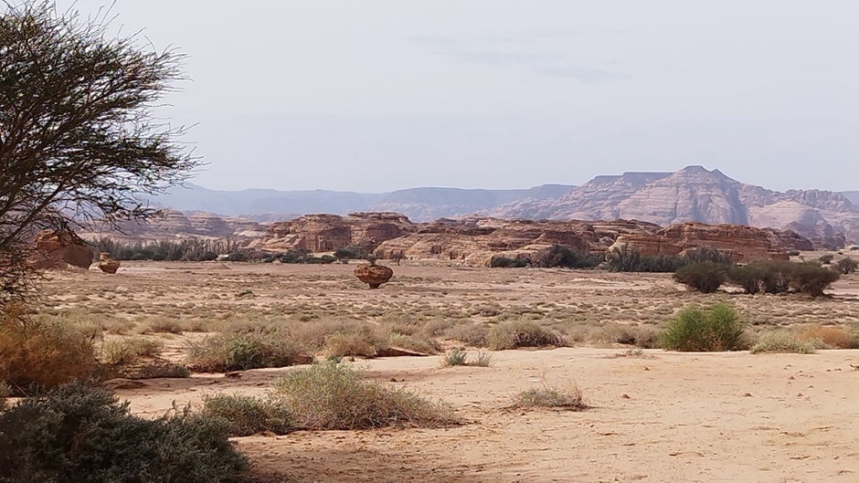 Die Tour in Hegra dauerte ca. 2 Stunden. Danach wurden wir mit dem Bus zurück nach Al Ula gefahren. Wir wollten dort noch die Oase besichtigen, wo es eine schöne, kleine Wanderroute geben soll. Leider konnten wir zu dem Parkplatz am Anfang der Route wegen Straßenbauarbeiten nicht hinfahren. Schade.