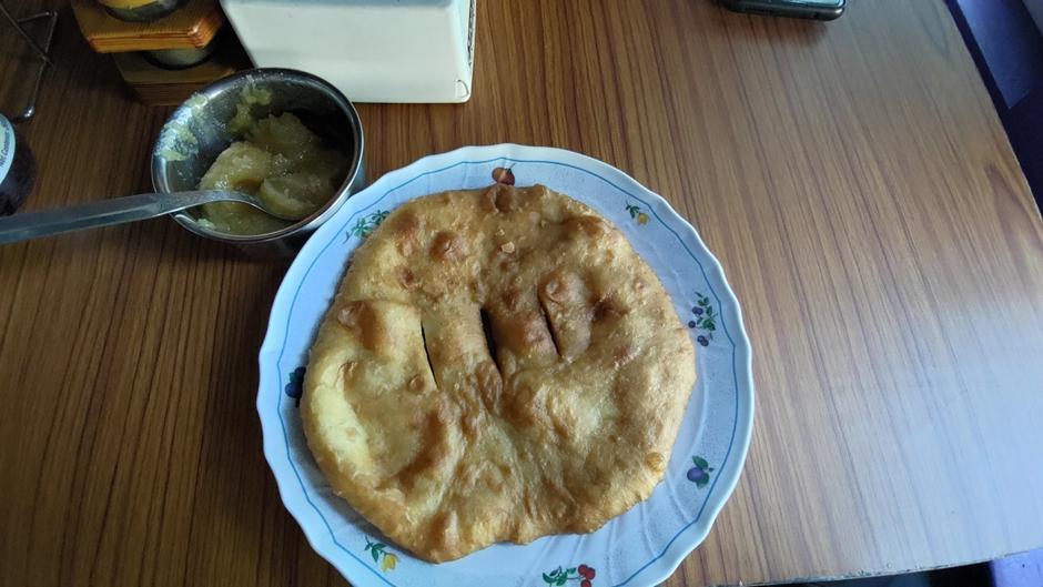 Nach den letzten Tagen hatten wir immer Porridge zum Frühstück, es war heute Zeit was neues auszuprobieren. Unser heutiges Frühstück war Tibetisches Brot mit lokalem Honig und Marmelade. Es schmeckte gut.