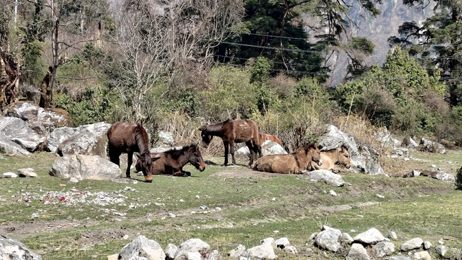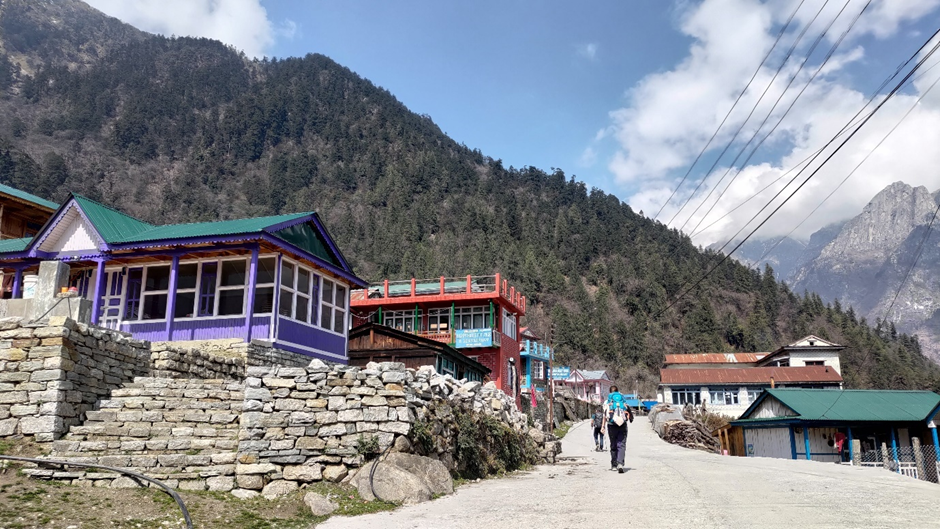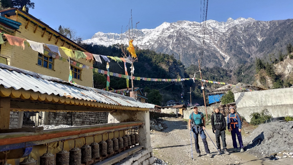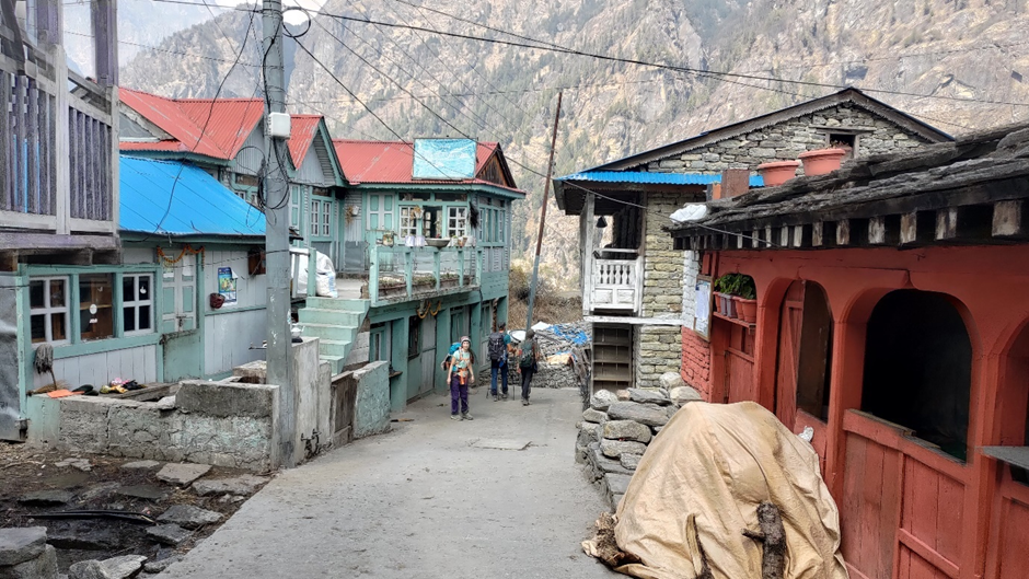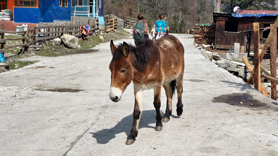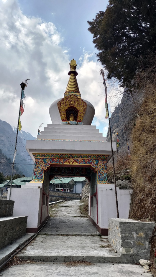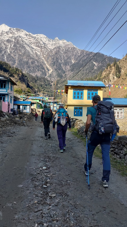 Ab und zu überquerten wir mehr oder weniger traditionelle Nepalesische Dörfer mit alten Stein- oder Holzhäusern, Gompas, Gebetsmühlen und Gebetsfahnen.