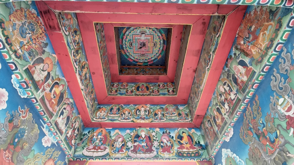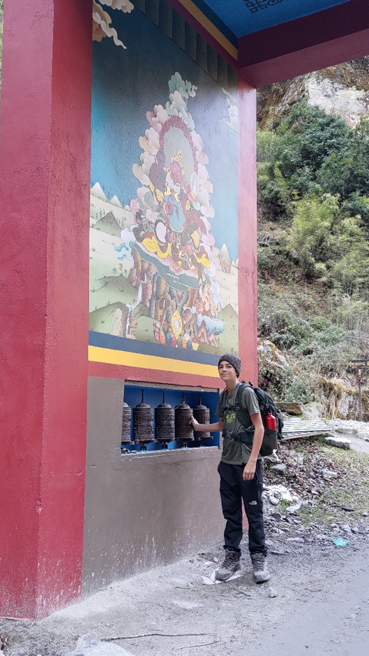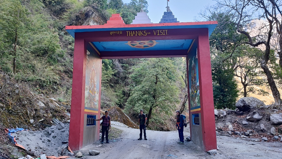 Am Ende des Dorfes gab es ein ähnliches Tor mit Gebetsmühlen, wie gestern beim Ankommen.