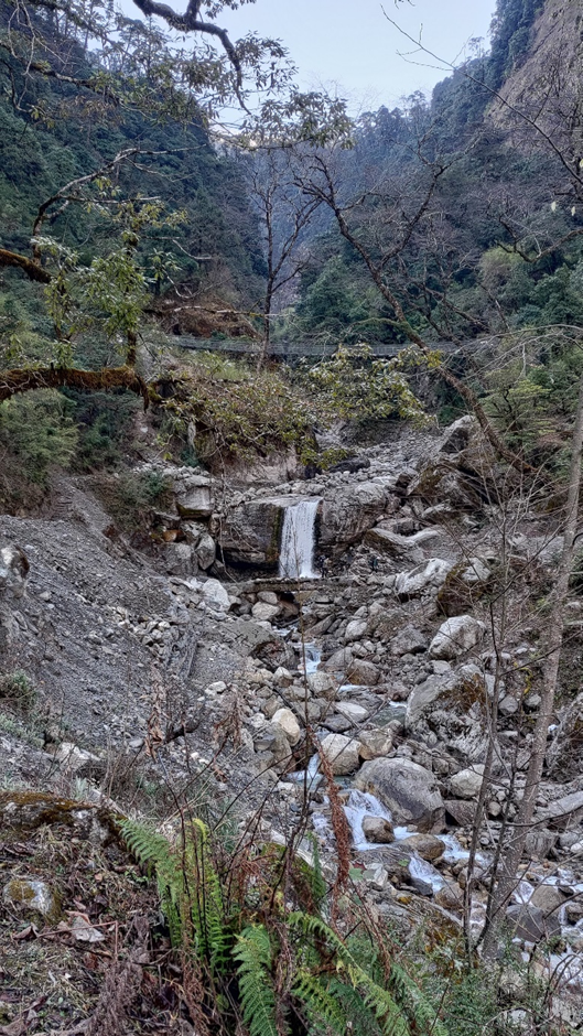 Ab und zu gab es sogar kleine Wasserfälle, bevor wir bei einer großen Hängebrücke ankamen.