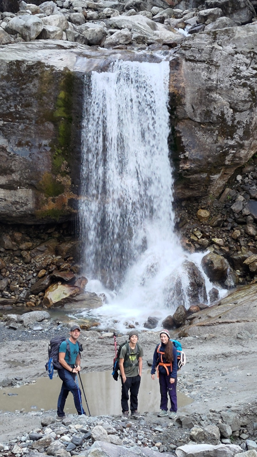 Wir mussten einen kleinen Bach vor einem Wasserfall überqueren.