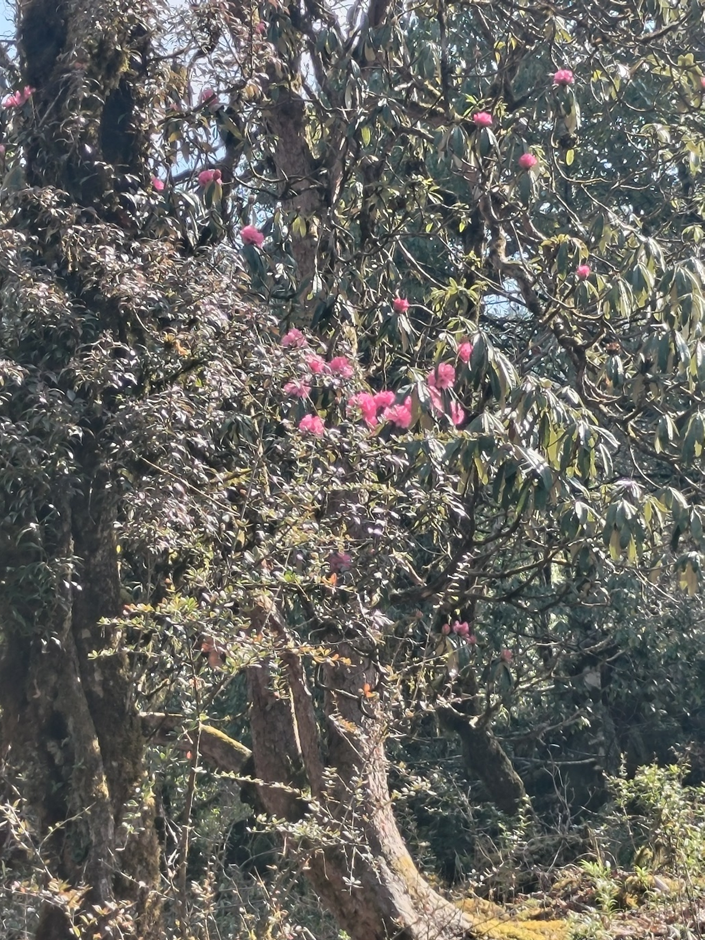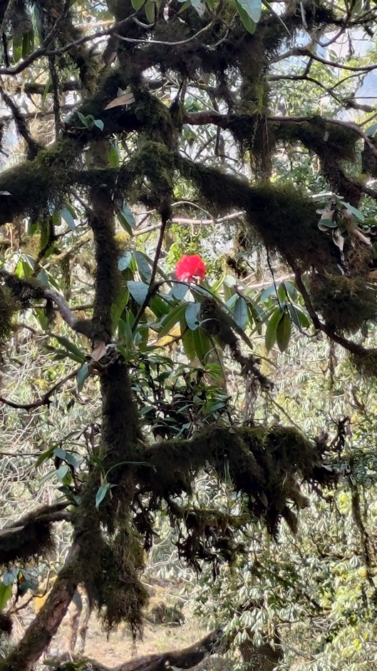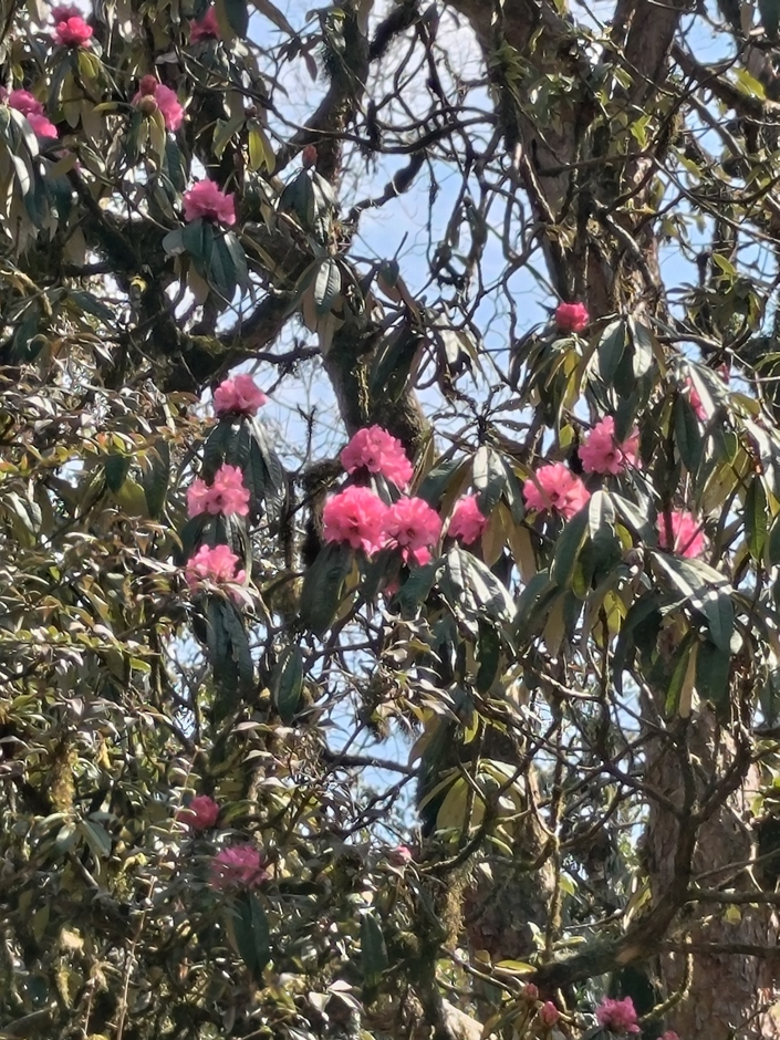 Die Rhododendronbäume (hier sind sie Bäume und nicht nur Büsche wie bei uns in Deutschland) fangen gerade an zu blühen, wir konnten schon die ersten roten Farbtupfer auf den sonnigen Plätzen entdecken.