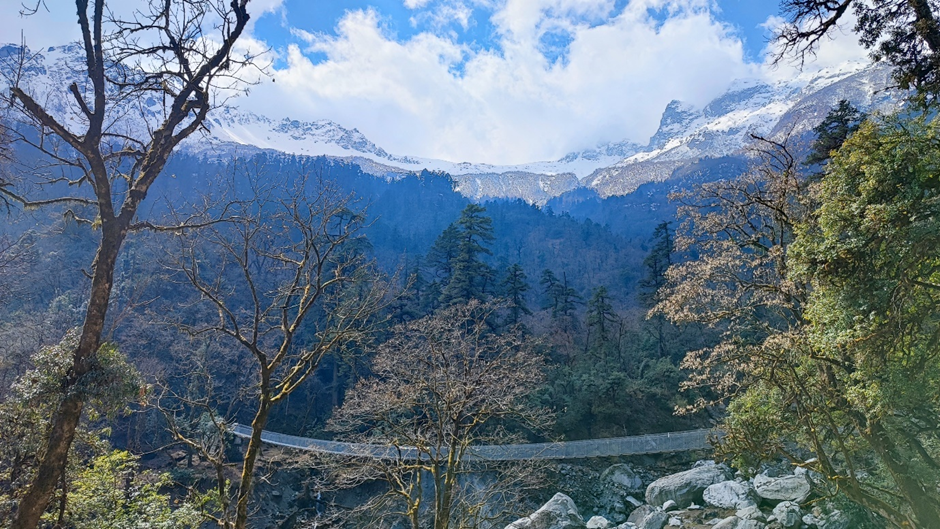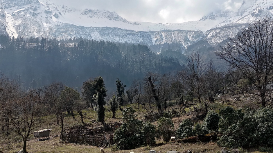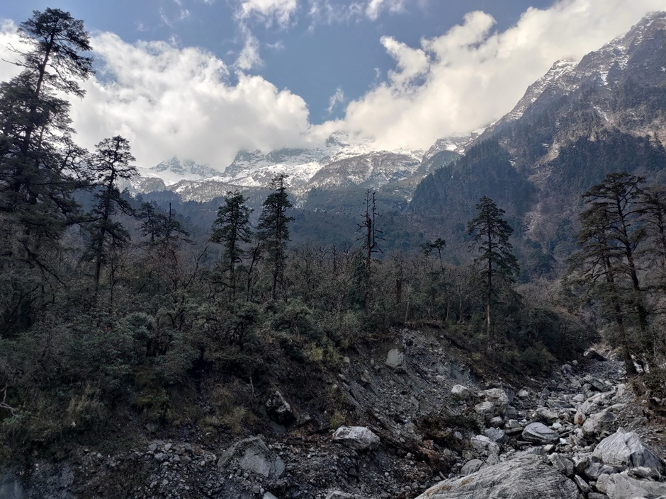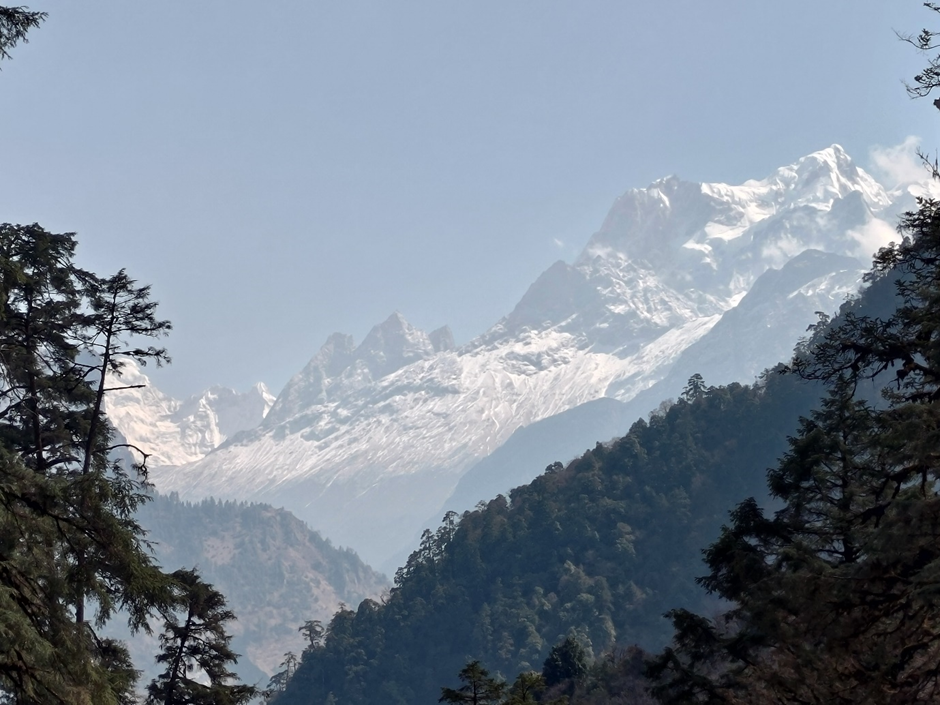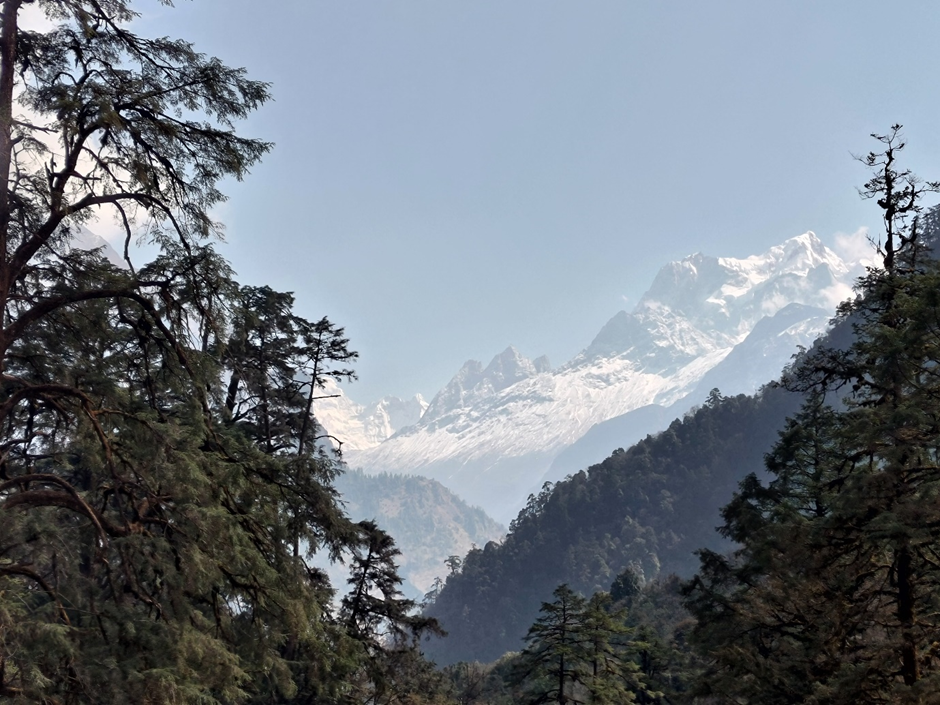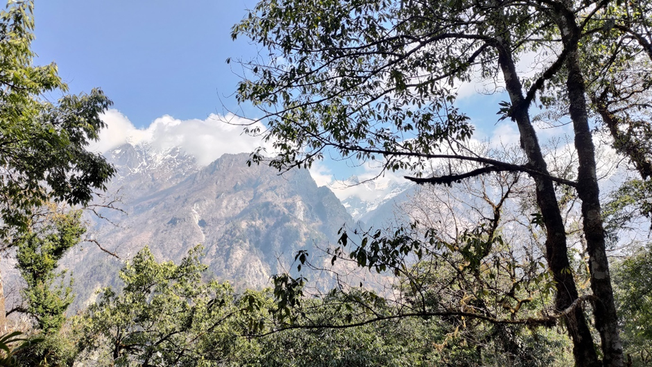 Durch die Bäume konnten wir überall um uns die majestätischen schneebedeckten Berge erblicken.
