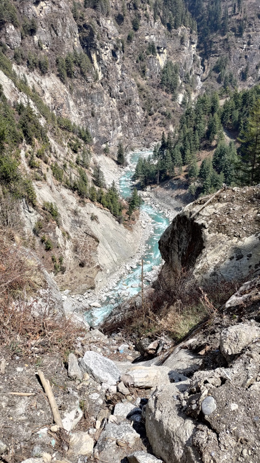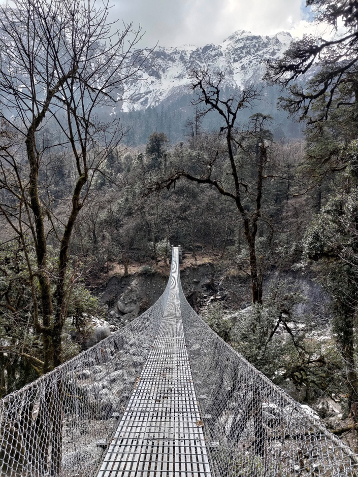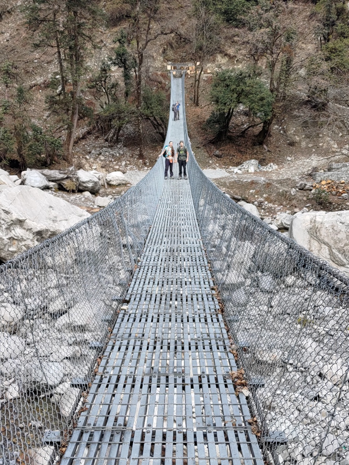 Von der Brücke war der Ausblick einfach unglaublich. Links von uns eine riesige schneebedeckte Bergkette (wahrscheinlich der Lamjung Himal), rechts von uns der 8162 m hohe Manaslu. Es war einfach atemberaubend. Ich war so glücklich hier zu sein, ich konnte nur lächeln. Ein großer, alter Traum wurde wahr.