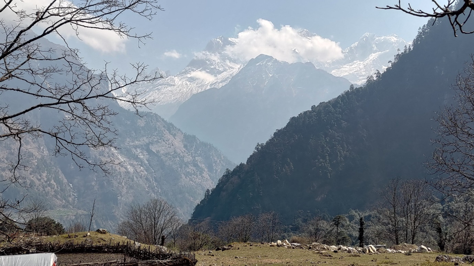 Heute hatten wir einen wirklich wunderschönen Tag. Wie in meinen Träumen. Heute war es so, wie ich mir die Wanderung in den Himalayas vorgestellt hatte. Als wir aufgestanden sind, empfing uns strahlender Sonnenschein. Wir hatten einen wunderschönen Blick auf den Lamjung Himal mit seinen 6983 Metern.