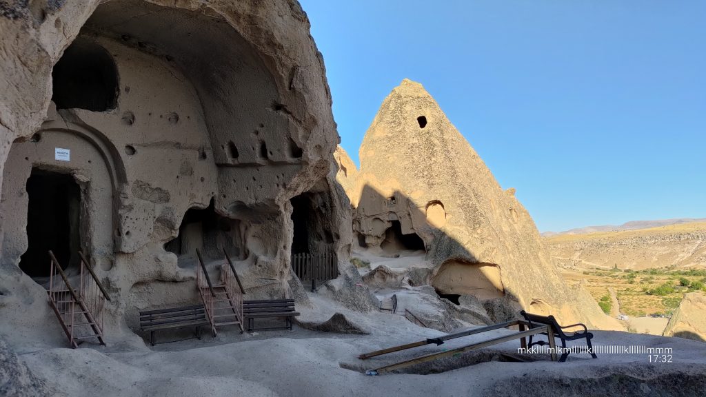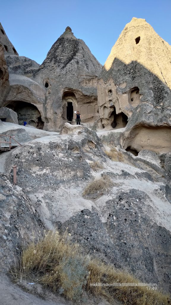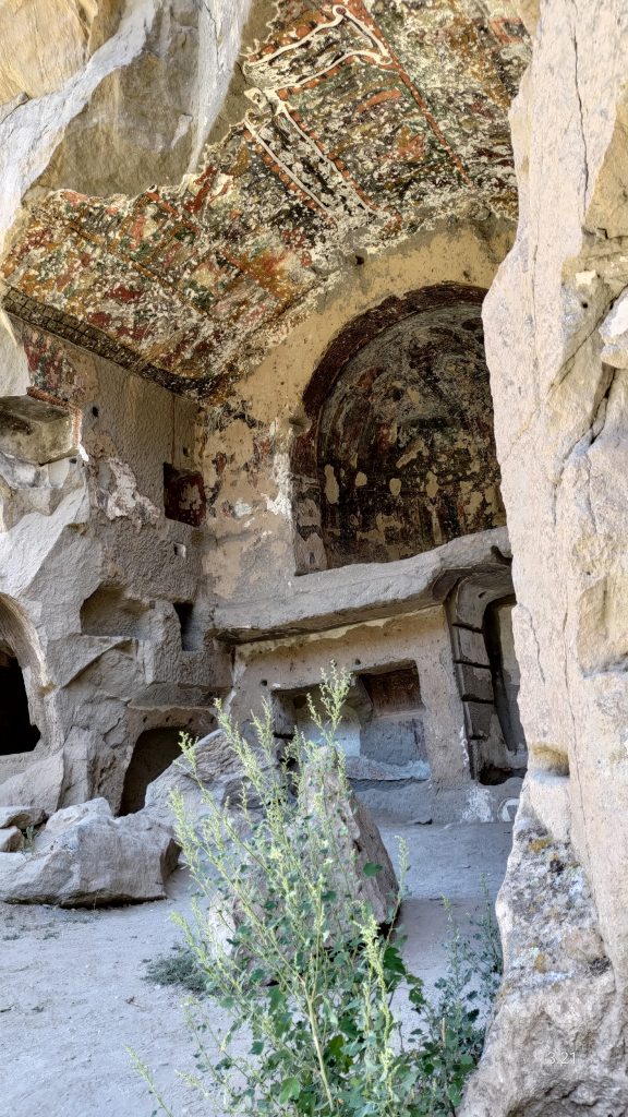 Danach haben wir noch die Selime Cathedral besucht. Dies ist eine komplette Klosteranlage, die die byzantinische Mönche direkt über Selime in die Wand gehauen haben. Sie hat eine Küche, Weinlager, Stallungen und 3 Kirchen. Es sind leider relativ wenig Fresken übriggeblieben, aber der Aussicht war sehr schön.