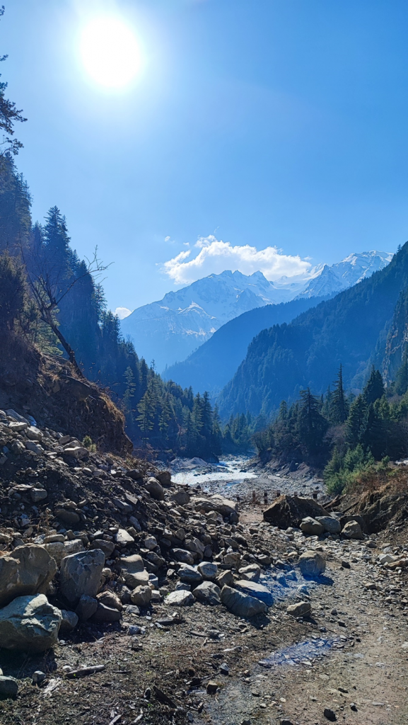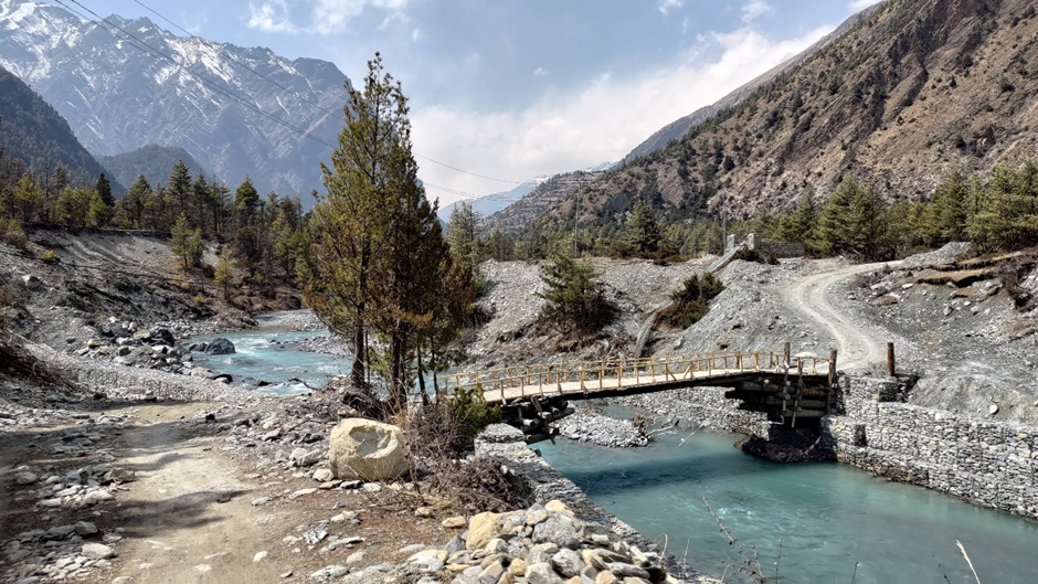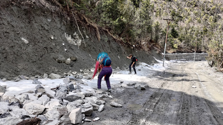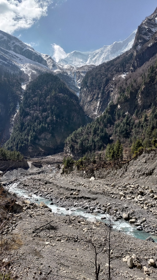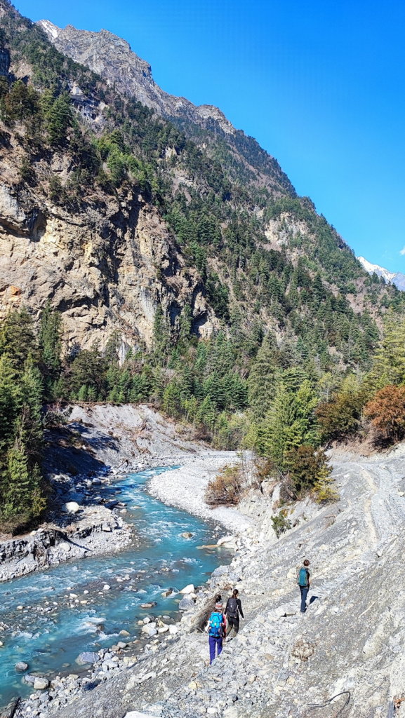 Wir liefen lange neben dem Marsyangdi Fluss auf einen älteren Straße, die offensichtlich teilweise von einem Erdrutsch zerstört wurde und folglich nicht mehr als Straße, sondern nur noch als Pfad genutzt werden konnte.