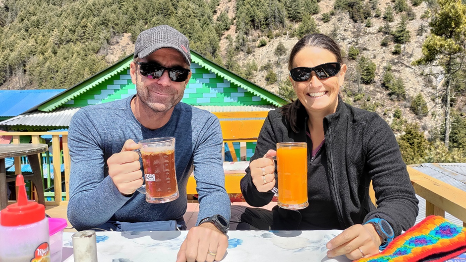 Wir haben in Dhikur Pokhari, ein Dorf mit vielen Rooftop Restaurants zu Mittag gegessen. Es war so schön, auf der Terrasse zu sitzen und die Sonne und den tollen Ausblick aus die umliegenden Berge zu genießen. Das Ganze hat uns sehr an unsere Skiurlaube erinnert.