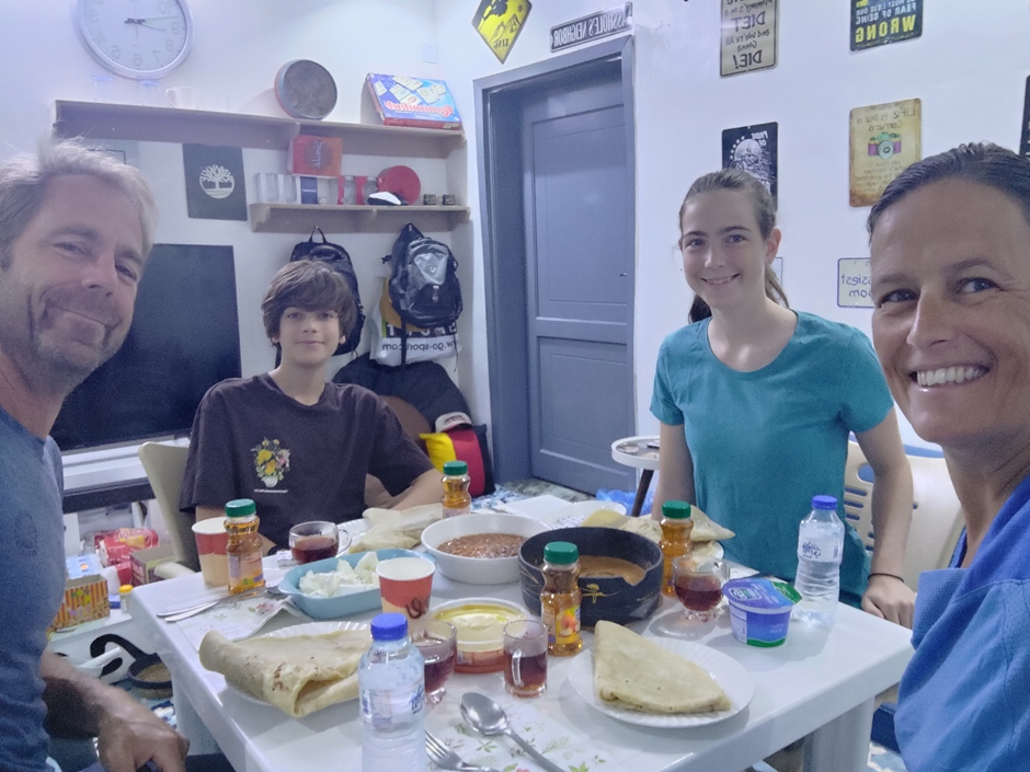 Als das Abendessen fertig war, haben uns die Männer auch dazu eingeladen. Wir waren allerdings so voll vom späten Mittagessen, dass wir es dankend ausgeschlagen haben. Ich habe den Tintenfisch, den sie gekocht haben, trotzdem probiert und ich muss sagen, der war der Beste, den ich jemals gegessen habe. Als die Männer sich verabschiedet haben, um nach Duba zurückzufahren, sind wir auch ins Bett gegangen.