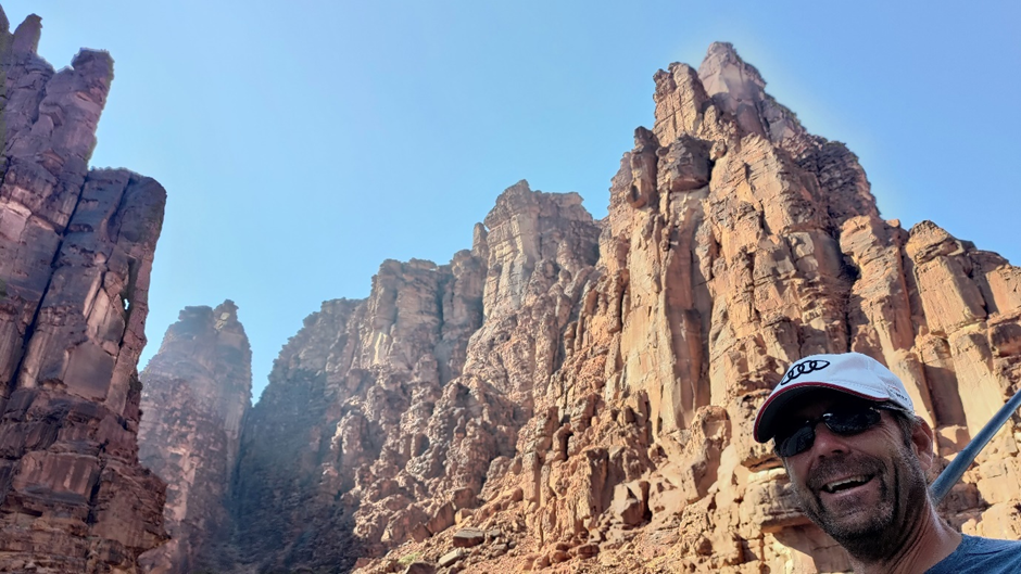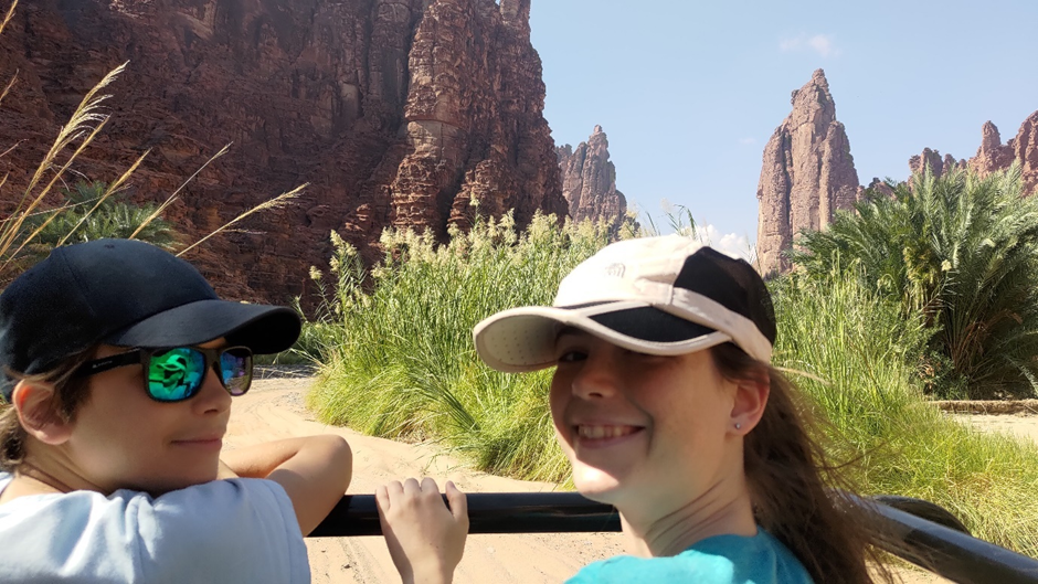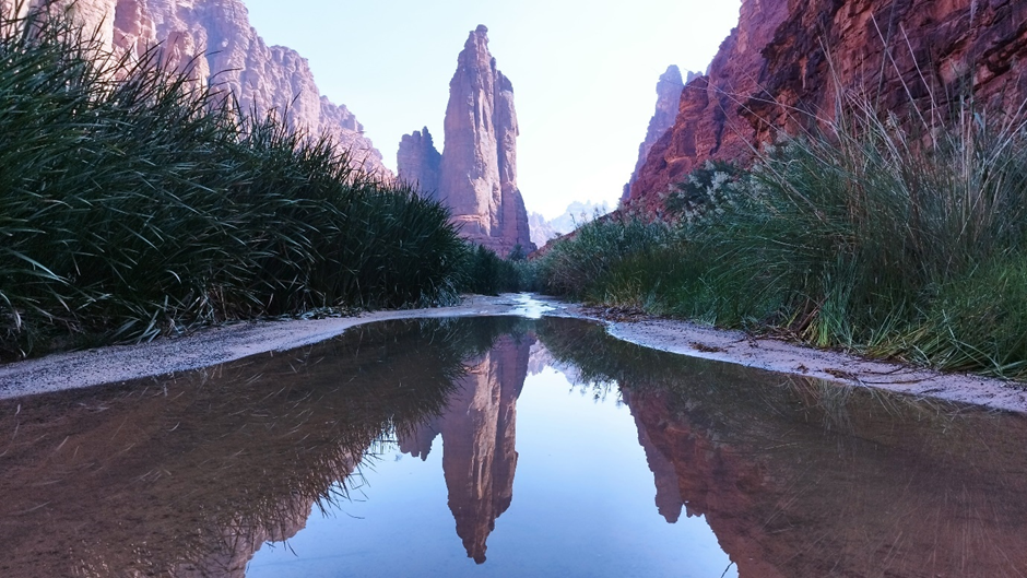 Wir haben ein paar Mal angehalten, um Bilder zu machen oder ein paar von Menschenhand geformte Treppen oder Wasserbecken anzuschauen. Wir hatten auch einen Stopp beim Wadi Disah’s Herz.