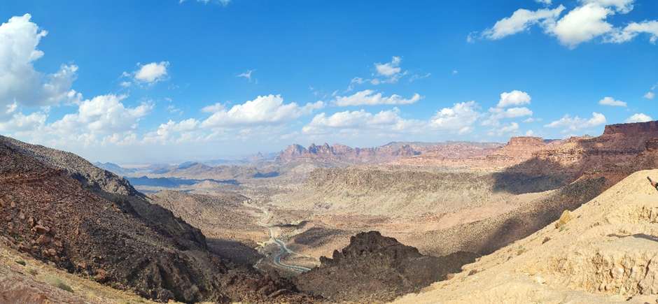 Danach sind wir durch Ashwaq zu dem Aussichtspunkt gefahren, wo wir auf dem Hinweg zur Farm auch vorbeigefahren sind und wo wir die Aussicht von der Straße genossen haben. Vom Aussichtspunkt war das Panorama noch gewaltiger.