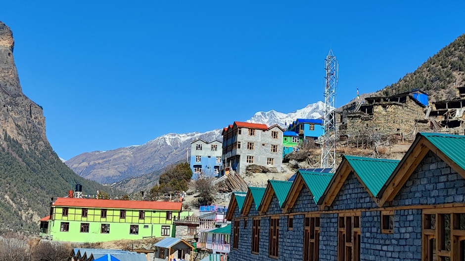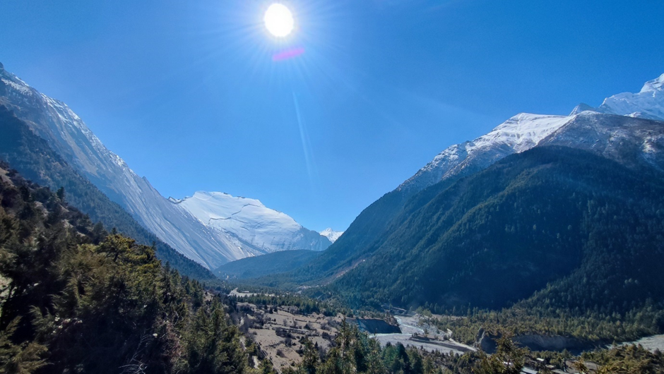 Der Tag lief nicht wirklich so wie geplant. Eigentlich wollten wir heute nach Ngawal laufen. Aber man plant… Ich schlief schon schlecht und bin öfter wegen Kopf- und Bauchweh aufgewacht. Als es endlich früh war, waren die Schmerzen immer noch da und mir wurde auch übel. Ich habe ein bisschen Wasser und schwarzen Tee mit Zucker getrunken und Medikamente gegen die Höherkrankheit (dessen Symptome ich eindeutig zeigte) und gegen Kopfschmerzen genommen. Alles sah ich leider in ein paar Minuten in der Toilette wieder, weil ich mich übergeben musste.