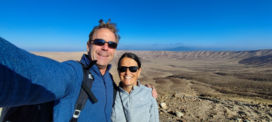 Ich wollte unbedingt nochmal hoch zum Krater laufen, um den Ausblick (auch ohne Sonnenaufgang) zu sehen. Marc hat mich begleitet. Die Kinder wollten lieber im kuschelig warmen Bett bleiben. Aber unseren Aufwand war es auf jedem Fall wert. Oben am Kraterrand war die Aussicht unbeschreiblich. Wir konnten das Innere des Kraters und die umliegende Landschaft mit den anderen Vulkanen, Lavafeldern und flachem Vorland sehen. Es war wirklich sehr schön.