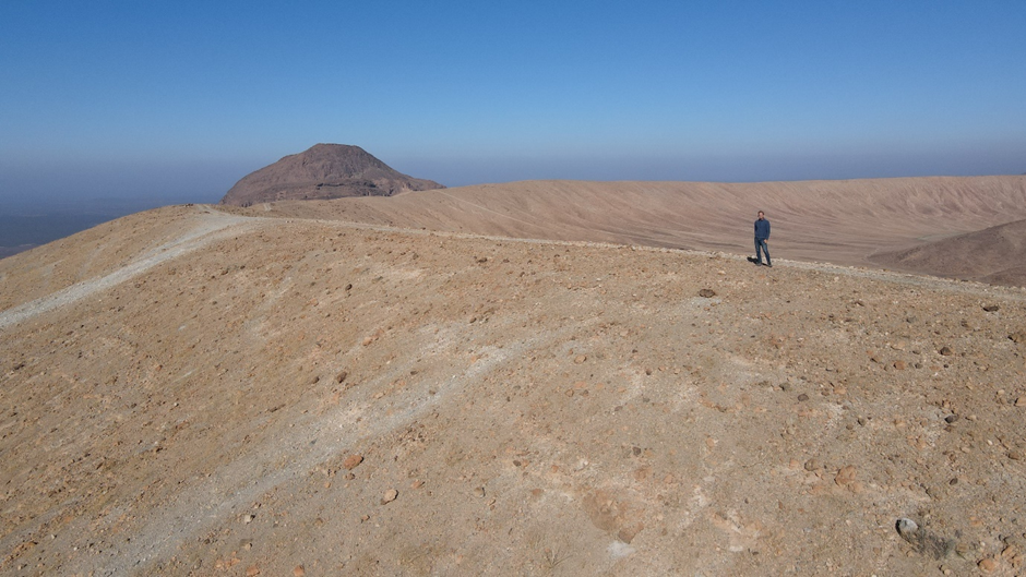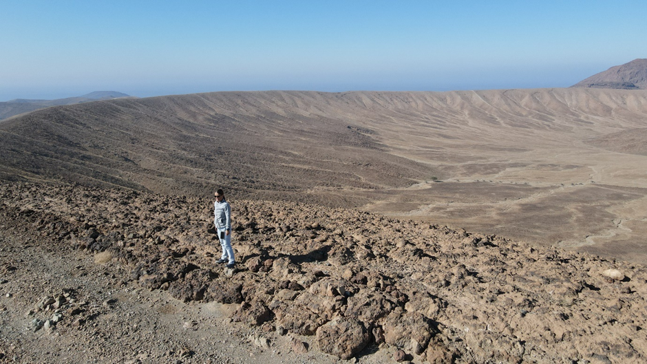 Das Innere des Kraters. Im Hintergrund der schwarze Vulkan: