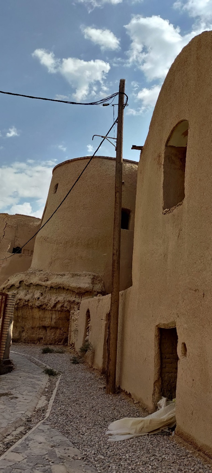 Mohammad von Tak Taku hat uns noch das Lehmdorf von Kharanaq empfohlen, das wir noch auf dem Weg nach Yazd anschauen wollten. Als wir ankamen, haben wir die Karawanserei neben den Stadtmauern gleich gefunden. Die war aber leider zu. Vor dem Eingang zum Lehmdorf saßen zwei Frauen, die Eintrittskarten für das Dorf verkauft haben. Aber der Preis war nicht wie üblich 1 Millionen Rial, sondern pro Person 1,5 Millionen. Wir haben bei großen und wirklich wichtigen und tollen Sehenswürdigkeiten wie z.B. der Schah Moschee in Isfahan nirgendwo so viel zahlen müssen. Wir fanden das Ganze zu touristisch und künstlich und haben uns entschieden,dass es den Preis für uns nicht wert ist. Wir sind lieber gleich nach Yazd weitergefahren. Kaum haben wir das Dorf verlassen, kam ein Polizeikontrollpunkt. Und das allererste Mal wurden wir tatsächlich angehalten. Der Polizist wollte komischerweise nur Marcs Führerschein sehen. Ob er davon wirklich etwas verstanden hat???