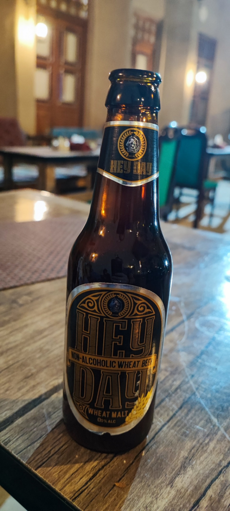Wir hatten jetzt wirklich alle großen Hunger, also sind wir in das Silk Road Hotel reingegangen. Im Innenhof konnte man hier auch traditionell auf Podesten speisen. Hier wird auch Kamelfleisch angeboten. Wir haben es ausgelassen und haben wider mal Hähnchen mit Reis in verschiedenen Variationen gegessen. Marc hat auch islamisches Bier probiert. Es ist alkoholfreies Malzbier, das weniger süß ist, als das Malzbier zu Hause. Es gab es sogar in drei Versionen: Klassik, Zitrone und Tropical.