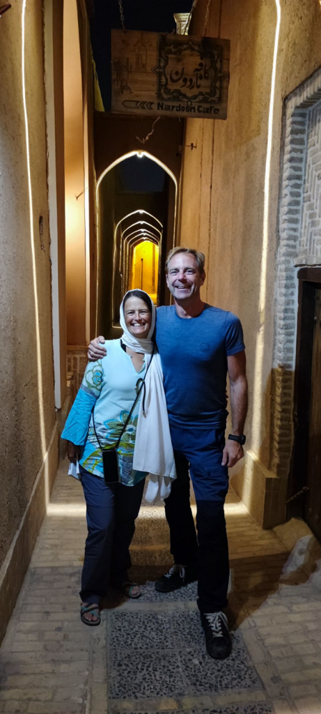 Wir sind wieder zum Park zurückgefahren und in die Stadt gelaufen. Wir hatten schon Hunger und die Kinder wollten etwas Indisches im Silk Road Hotel essen. Als wir beim Hotel ankamen, sahen wir einen bekannten Camper: Sebi und Judith waren da. Es war schön sie wiederzusehen. Wir waren total überrascht, wir haben es schon total vergessen, dass wir uns über diesem Parkplatz direkt vor dem Hotel unterhielten. Uns wurde klar, dass es hier auch für Fritzchen genügend Platz gäbe. Marc ist mit Marius schnell zu Fritzchen gelaufen, um ihn zu holen. Auf dem Weg haben sie noch unsere anderen deutschen Reisebekannten aus Kashan getroffen, sie wollten mit ihren alten Mercedes Hauber auch auf dem Parkplatz übernachten. Mit zwei anderen kleineren Camper waren wir am Ende ein ganz schöner Haufen. 😊 Wir haben von den Anderen den Tipp bekommen, unsere Visa in Yazd zu verlängern. Es wäre hier am einfachsten und sollte überhaupt kein Problem sein. Wenn wir die Visa verlängern würden, müssten wir uns nicht so beeilen und können auch in Yazd länger bleiben. Zwei andere Reisenden würden es morgen probieren, wir könnten ggf. mit ihnen zusammen hin.