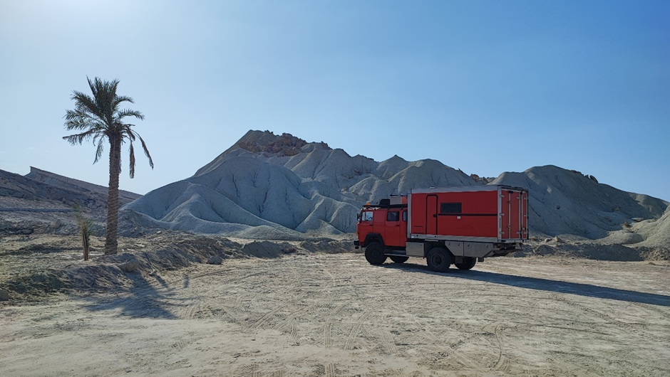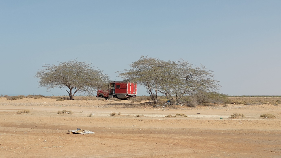 Unsere Wassertanks waren fast leer, deshalb war unser erstes Ziel eine Wasserstation, wo wir sie befüllen könnten. Wir haben die auf IOverlander markierte Entsalzungsstation schnell gefunden. Obwohl es Wochenende war, war jemand dort. Der Mann war sehr nett und hilfsbereit und unsere Wassertanks waren innerhalb von 15 Minuten wieder voll. Das Wasser hat diesmal auch nichts gekostet.