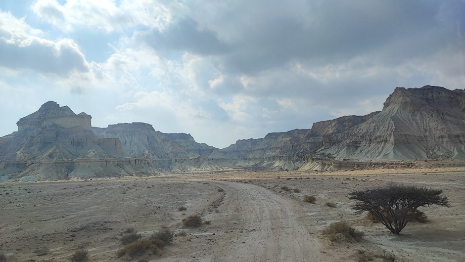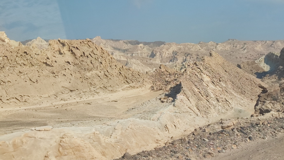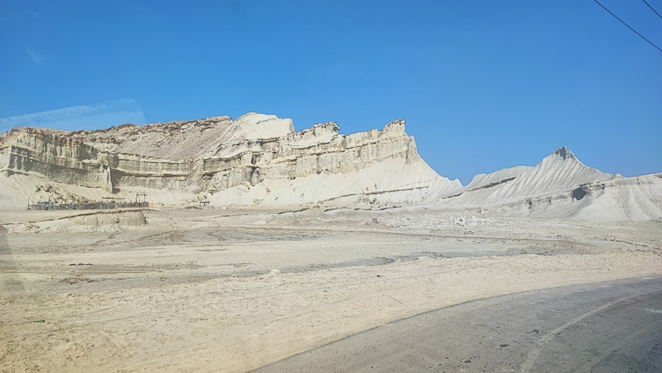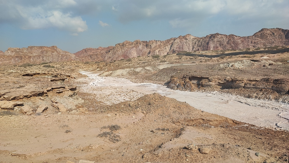 Nach dem Canyon sind wir zu den Namakdan Salt Caves gefahren. Wir wussten wieder nicht, was auf wartet. Die Salzhöhlen wurden ausgeschildert, wie alle anderen touristischen Ziele der Insel. Am Anfang fuhren wir auf einer Asphaltstraße, aber diese endete bald. Danach gab es nur eine Piste, mal besser, mal schlechter. Auf dem Weg hat uns eine tolle Landschaft begleitet.