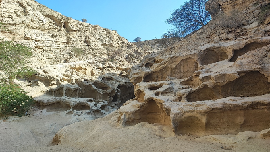 Wir wollten auf der Insel nur noch einen Ort anschauen: das Tandis Tal (Valley of the Statues). Es ist auch eine Art Schlucht, aber ganz anders als das Chahkooh Canyon.