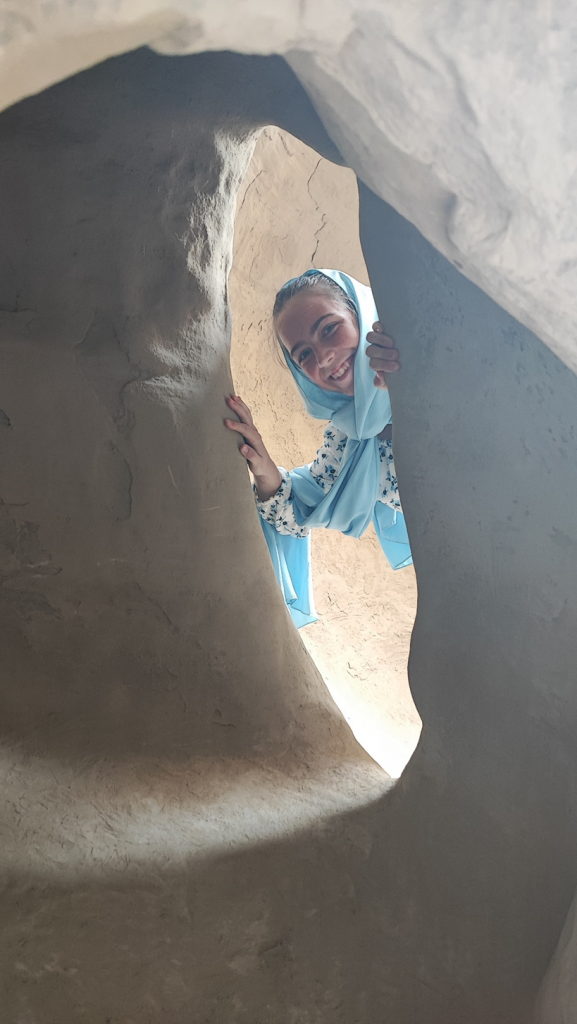 Als wir bei den Salzhöhlen ankamen, waren wir die einzige Besucher. Hier mussten wir auch einen Eintritt bezahlen (wie meistens 1 Mio Rial pro Person, was 2 EUR entspricht.) Wir durften mit Fritzchen zum inneren Parkplatz fahren.