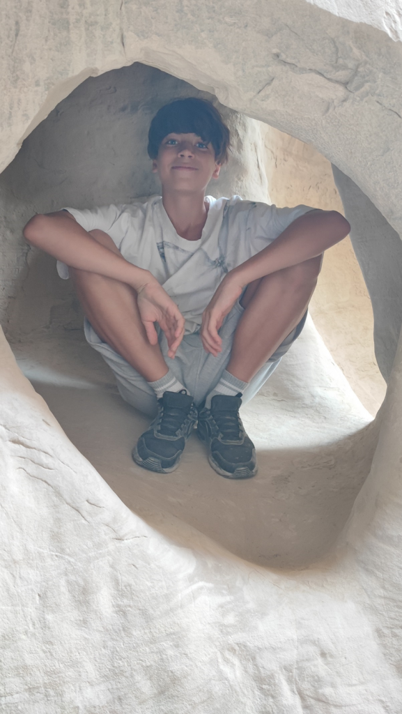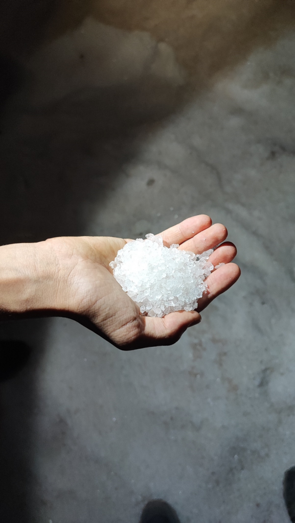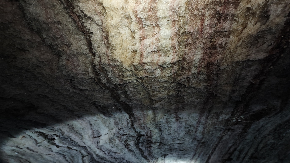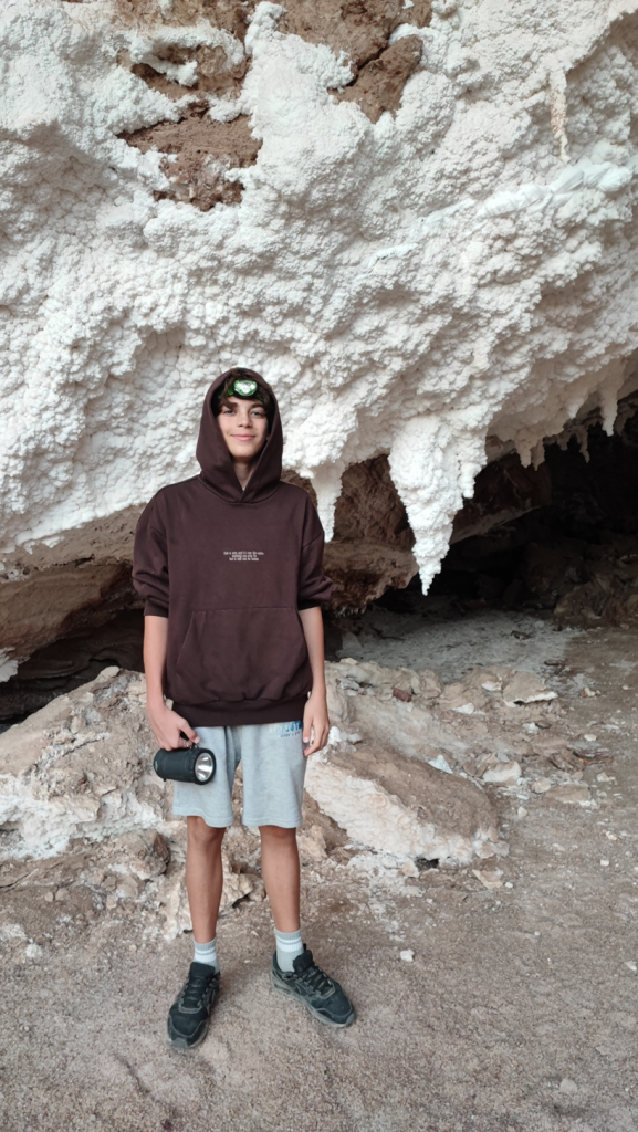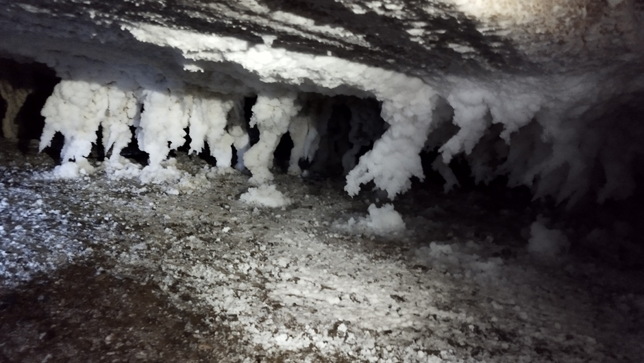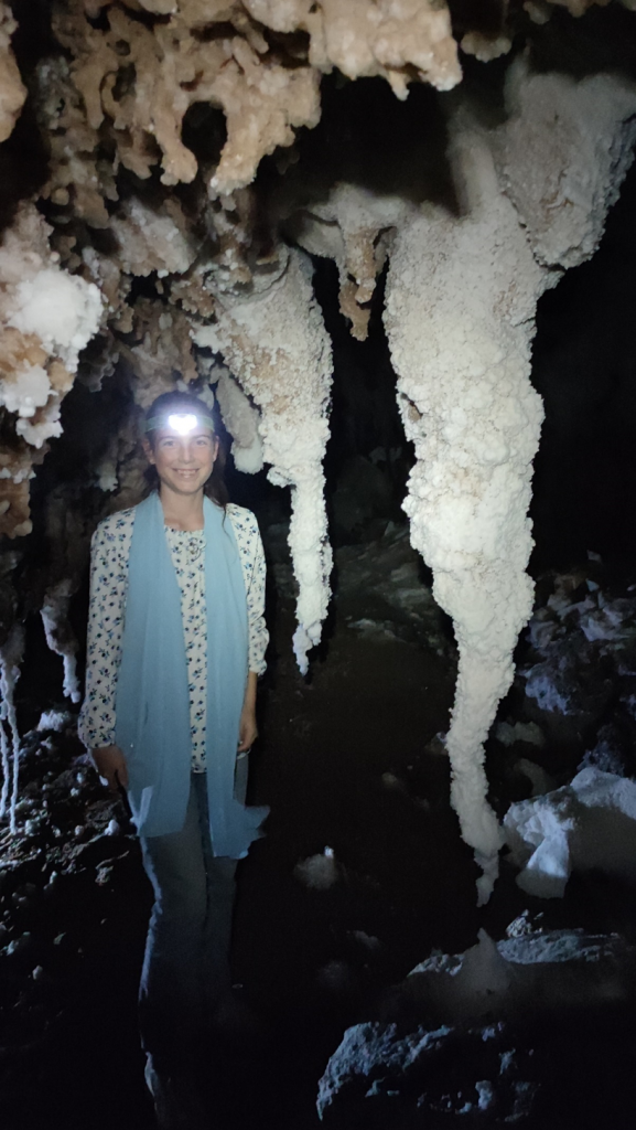 Wir wollten trotzdem die Höhle Nr. 1 auch sehen. Diese hatte nur einen Zugang und innen war es relativ warm. Hier waren nicht so ausgeprägte Stalaktiten und Stalagmiten. Der Guide hat uns erzählt, dass früher drinnen ein sehr großer stehender gelber Tropfsteil aus gelbem Salz stand, der aber vor ein paar Jahren leider zusammengebrochen ist.