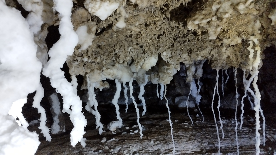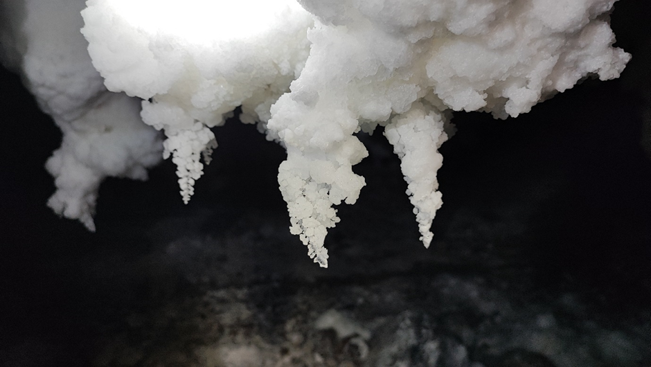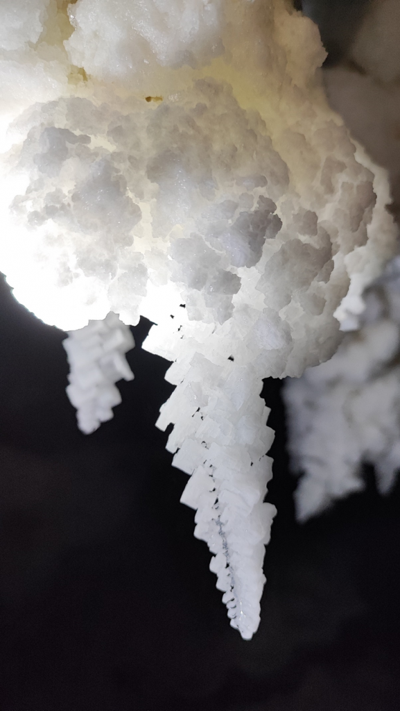 Was wir in der Höhle sahen, war atemberaubend. Wir haben sowas noch nie gesehen. Überall hingen und standen Stalaktiten und Stalagmiten aus weißen Salzkristallen.