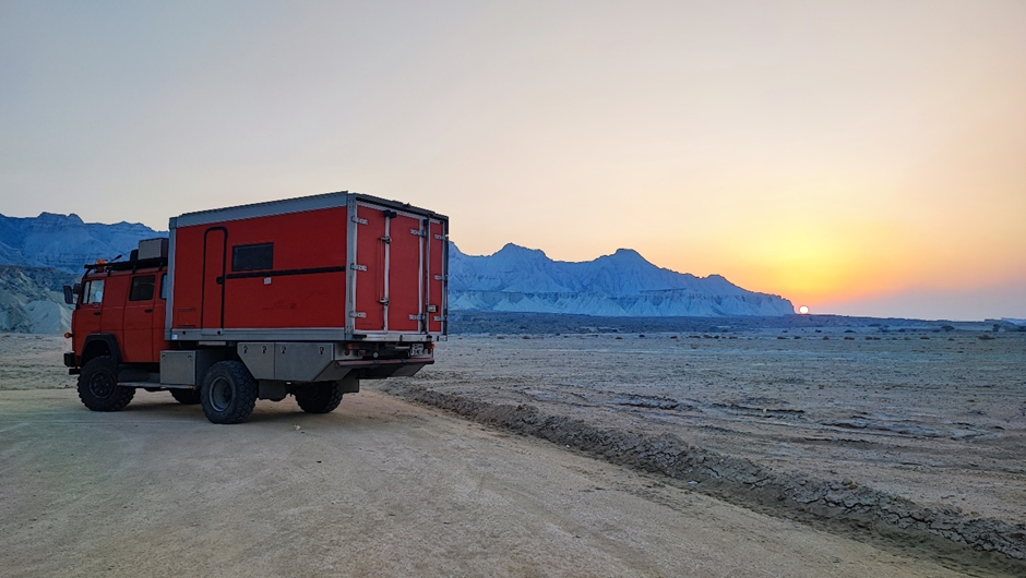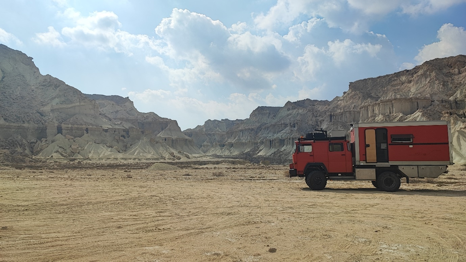 Kaum haben wir angehalten, kamen wieder Iraner vorbei. Diese waren auch Camper und waren von unserem Auto total begeistert. Es wurde gefilmt und fotografiert was das Zeug hält. Es waren 3 Pärchen aus Teheran und Isfahan, die hier das Wochenende verbracht haben. Zwei Frauen konnten auch Englisch und so konnten wir uns ein bisschen unterhalten. Sie sind auch für den Abend geblieben, haben etwas gekocht, aber danach haben sie sich verabschiedet und sind weggefahren. Wir waren wieder alleine und hatten eine Nacht vor der tollen Kulisse.