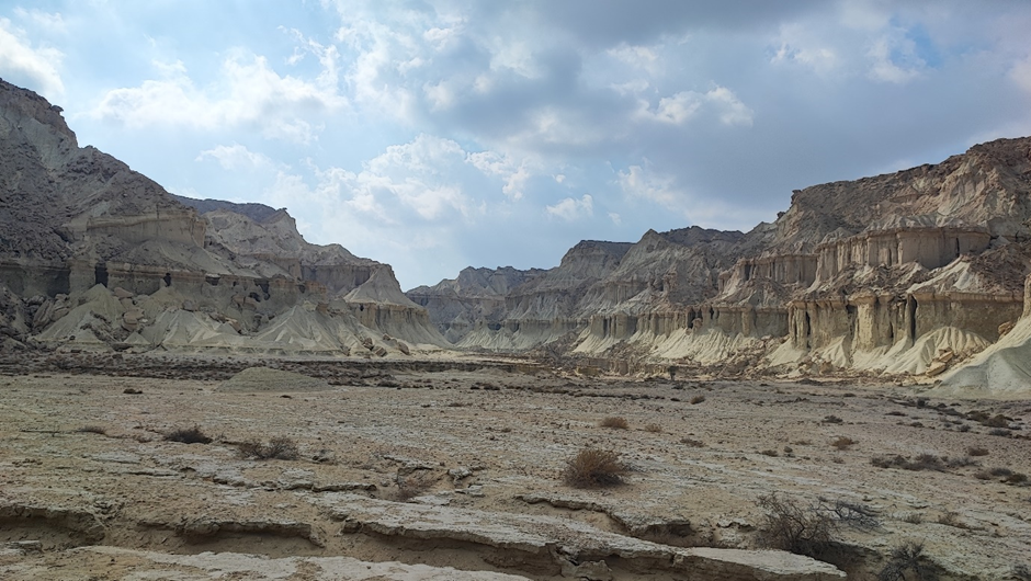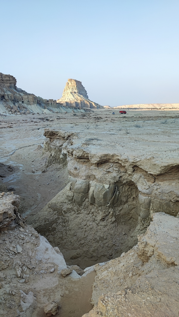 Wir wurden von einer iranische Familie, die leider kein Englisch konnte, auch zum Essen eingeladen, aber wir haben schon gerade gegessen und wollten die Schlucht anschauen. Es gab keine Wege oder Pfade, wir sind einfach in Richtung der Öffnung der Schlucht gelaufen. Der Boden war mit tiefen Rillen durchgezogen, wir mussten sie immer wieder überspringen oder um sie herum laufen.