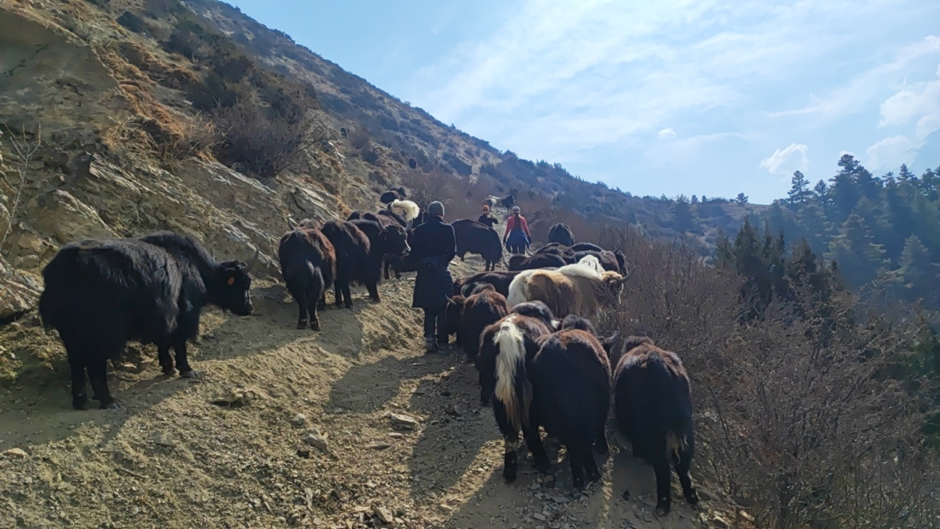 An einer Stelle blockierten Jaks den Weg. Die waren zwar groß, aber ruhig und gewährten uns Platz.