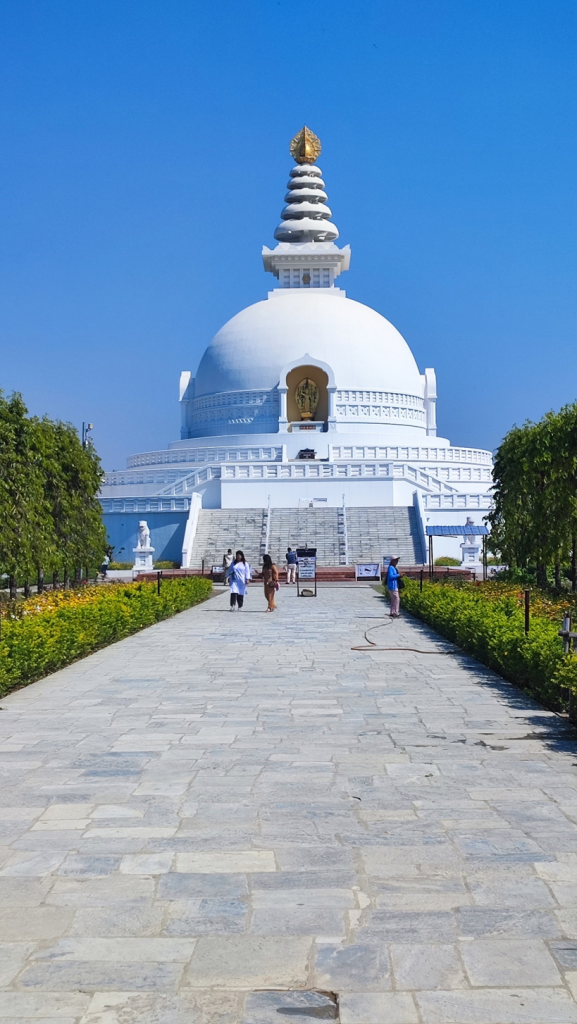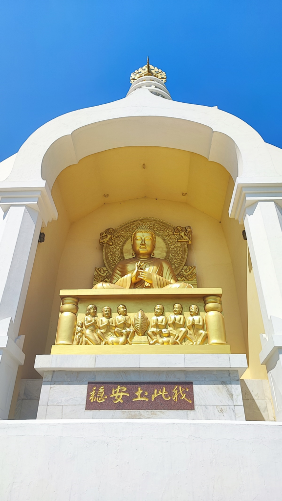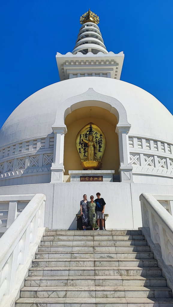 Wir sind zuerst zur Weltfriedenspagode gelaufen. Die Pagode wurde nach dem zweiten Weltkrieg von japanischen Buddhisten geplant und gebaut und kostete ca. 1 Million USD. Es ist ein schönes Gebäude mit einem harmonischen Park davor.
