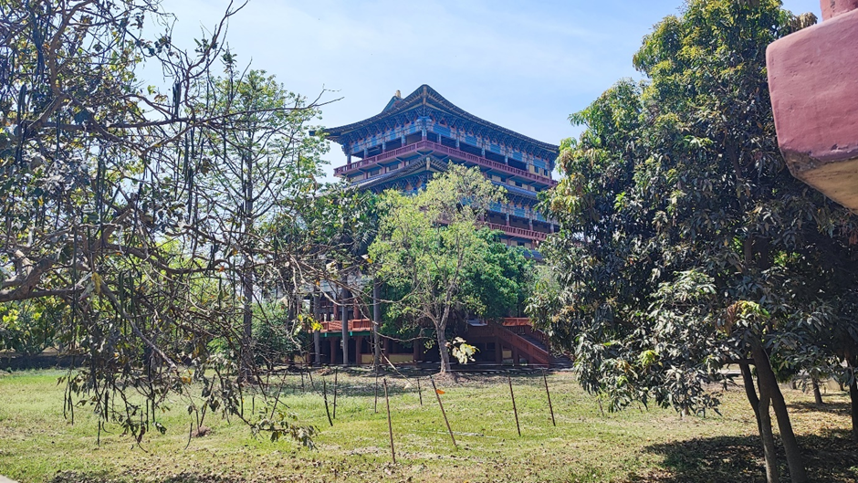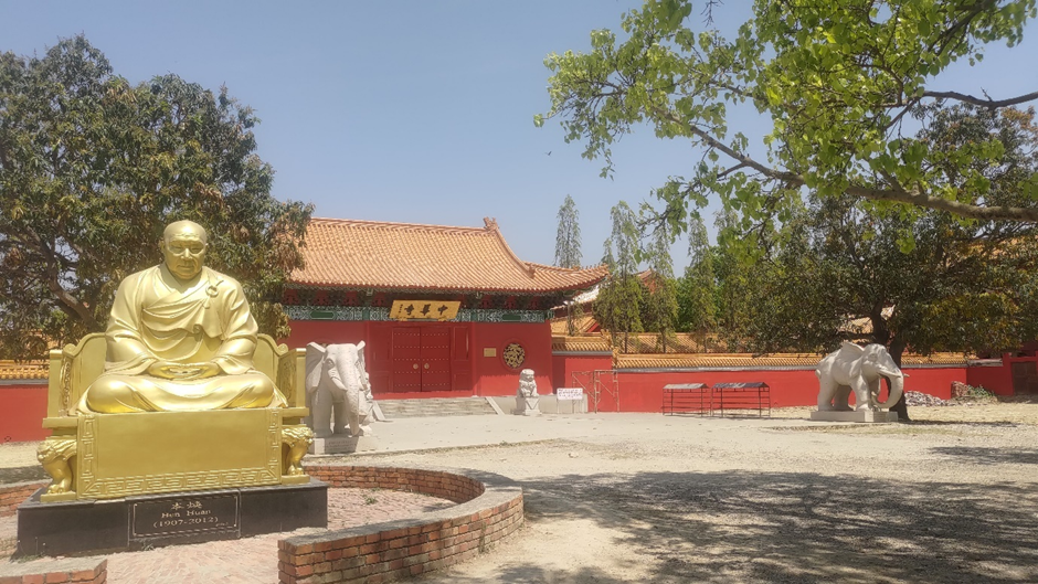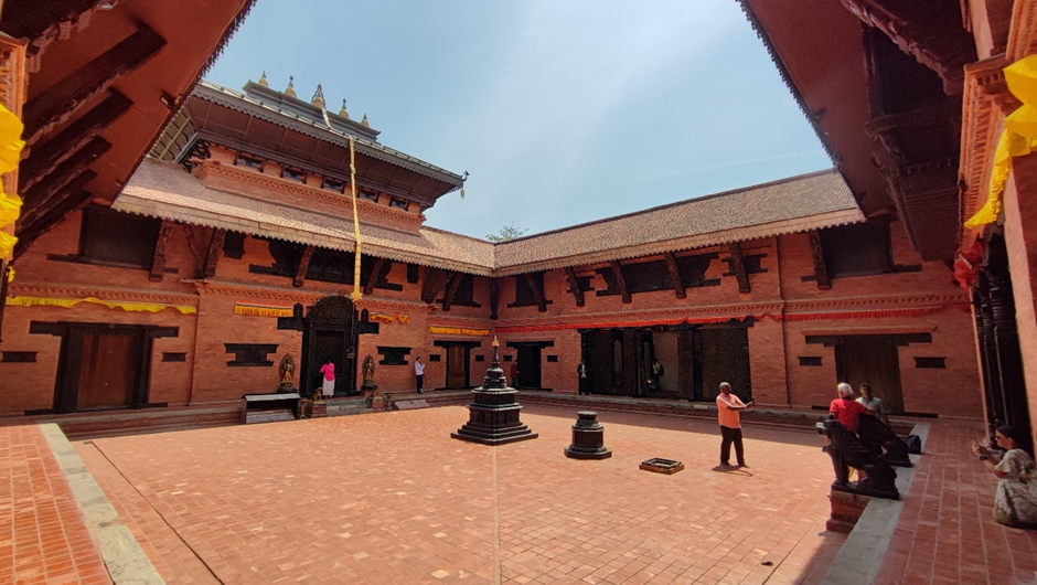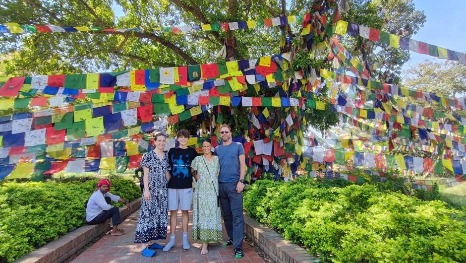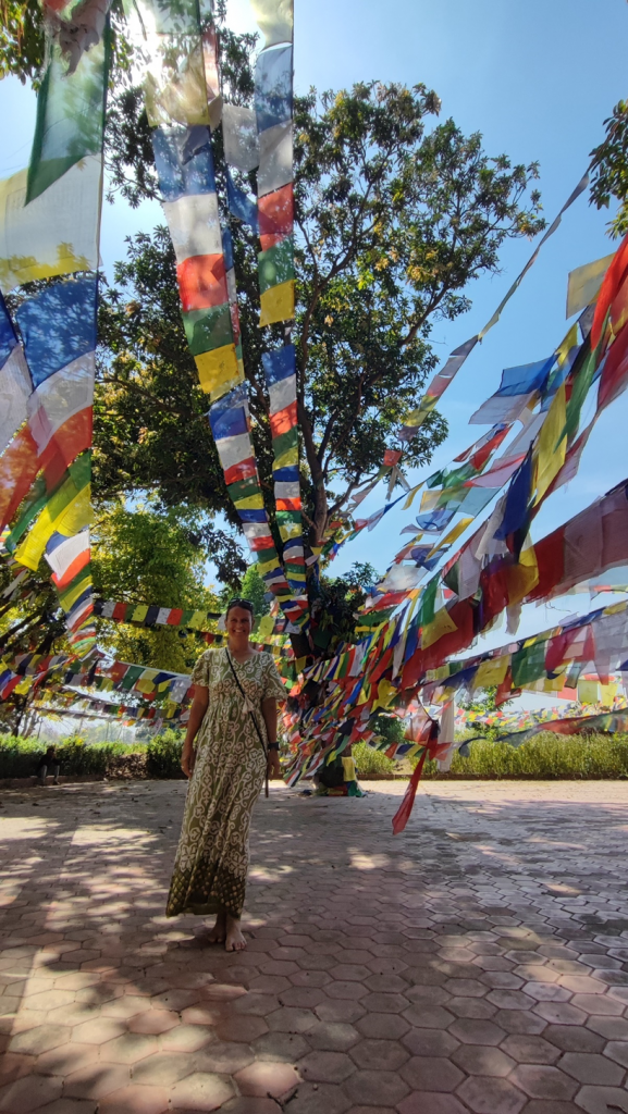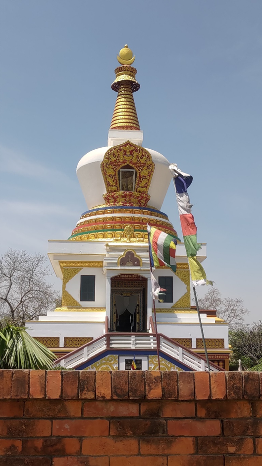 Wir haben die Hitze unterschätzt, als wir frühs gedacht haben, wir könnten die gesamte Tour in Lumbini zu Fuß absolvieren. Nach der Besichtigung der Pagode haben wir ein Tuktuk genommen und sind damit zum Mayadevi Tempel gefahren. Der Tempel steht im heiligen Garten, der vom heiligen Wasserbecken umgeben ist. Wir haben die Ruinen der Tempel und die uralten Bäume mit den vielen Gebetsfahnen angeschaut, bevor wir langsam zu Fritzchen zurückgeschlendert sind.