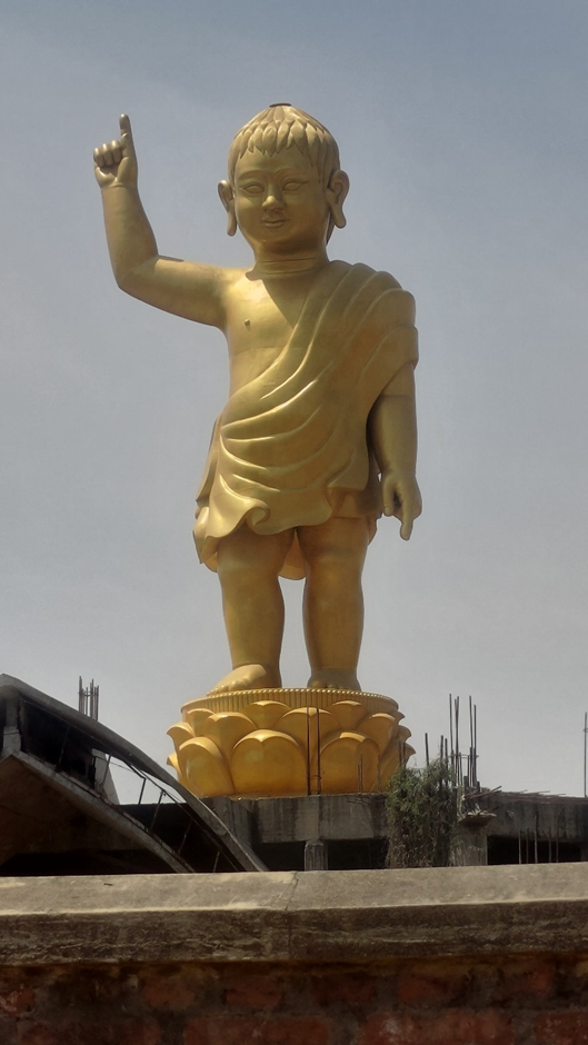 Unsere Wasserpumpe funktioniert trotz mehrerer Reparaturversuche leider immer noch nicht richtig. Marc hat heute früh noch einen Anlauf genommen, sie zu reparieren. Die Hoffnung stirbt als Letztes. Als er fertig war, sind wir losgefahren. Wir mussten „nur“ 160 km bis zu Lumbini fahren, eigentlich ein Katzensprung. Aber nicht in Nepal! Wir brauchten für die Strecke 5,5 Stunden. Meistens gab es wieder keine Straße, nur eine löchrige Piste mit unglaublich viel Staub. Wir mussten die Fenster oft zumachen und trotzdem wurde alles in Fritzchen mit einer dicken Staubschicht bedeckt.