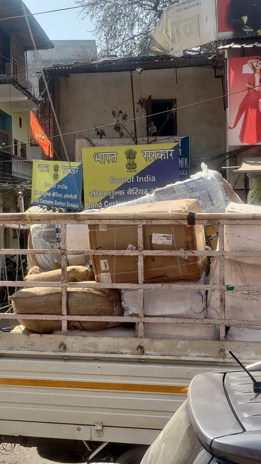 Es war so warm, dass wir uns entschieden haben, direkt zur Grenze weiterzufahren. Die Grenze war nur 30 km entfernt und wir waren nach kurzer Zeit schon dort. Die Grenzen zwischen Nepal und Indien sind für die Nepalis und Inder offen, es gibt für sie keine Grenzkontrollen. Nur die wenigen Ausländer, wie wir, müssen hier die Formalitäten beachten. Die Grenze auf der Nepali Seite ist total unscheinbar, wir haben die Immigration und Zoll nur deswegen gefunden, weil sie im IOverlander zum Glück markiert waren. Man sieht es kaum, wo die tatsächliche Grenze ist, die Stadt mit den Geschäften und Gebäude geht ohne eine Lücke weiter. Die indische Seite war eine absolute Tragikomödie. Erst mussten wir mitten auf dem Weg anhalten, nur damit die indischen Grenzposten unsere Daten händisch in ein großes Buch eintragen können. Danach durften wir mit dem Auto nicht dort stehen bleiben, wo wir den Verkehr relativ wenig blockierten, wir mussten 50 m weiterfahren zum Zollgebäude. Das Haus hätten wir ohne IOverlander gar nicht gesehen, es war kaum sichtbar.