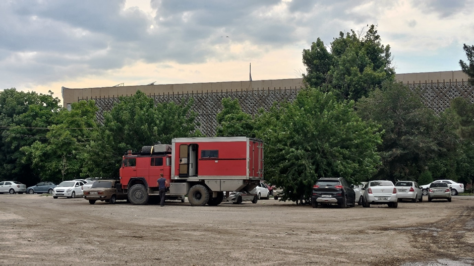 Die Nacht war angenehm, aber tagsüber war die Hitze sehr groß. Wir blieben deshalb im Fritzchen und wollten die Stadt erst am Nachtmittag besuchen. Unser Parkplatz war sehr zentral, wir hatten sogar einen Blick auf den Registan.