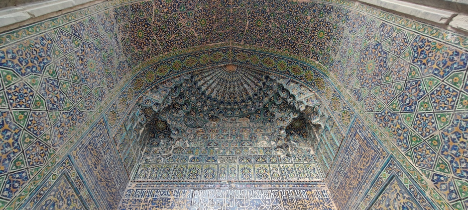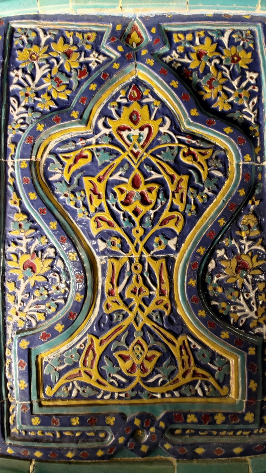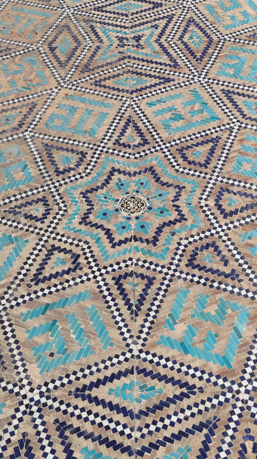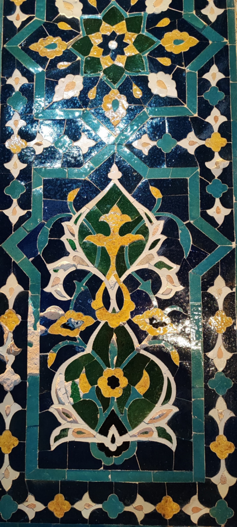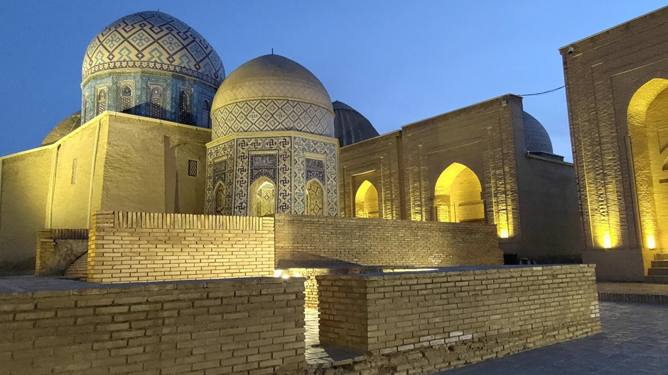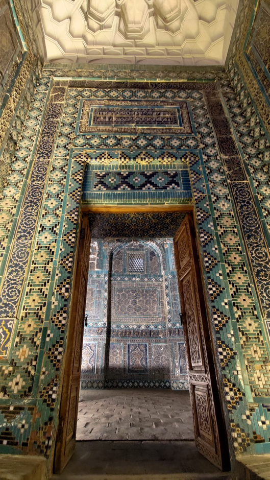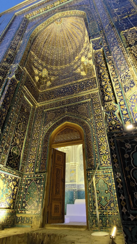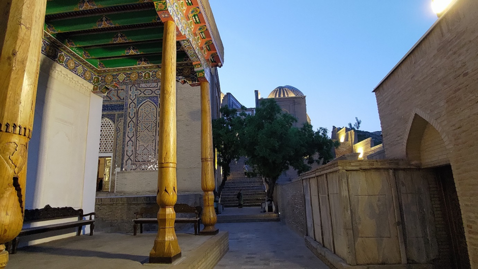 Oben ankommen, standen wir am Anfang eines Boulevards von Mausoleen, eines schöner als das andere. Die mosaikbedeckten Meisterwerke haben die reichste Flieskunst der muslimischen Welt. Wir waren dort in der blauen Stunde. Als die Lichter angemacht wurden, wirkte der ganze Komplex von wunderschönen Gebäuden noch beeindruckender.