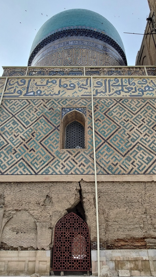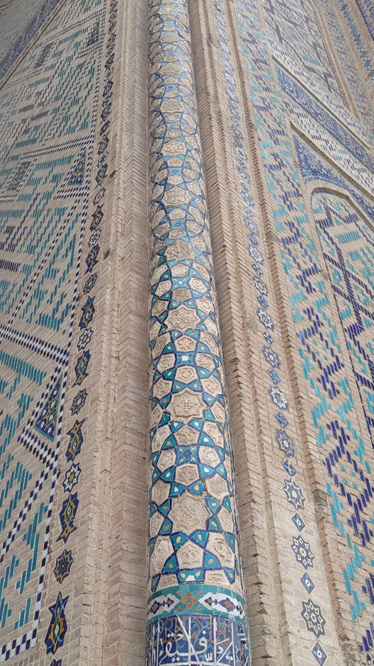 Von hier liefen wir zu der Shah-i-Zinda. Ich habe gelesen, dass es hier im Friedhof mehrere Mausoleen zu besichtigen gibt, aber ich habe nicht damit gerechnet, was uns erwartete. Wir bestiegen die vielen Treffen neben dem Eingang zur kleinen Moschee.