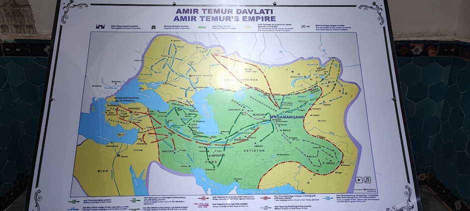Beeindruckend war auch das Ausmaß des Reiches, über das Timur geherrscht hatte. Wir fanden es sehr komisch, dass wir alle von Dschingis Khan oder Alexander dem Großen gehört haben, aber Timurs Name für uns alle unbekannt war, bevor wir diese Reise starteten. Wir haben erst von ihm gehört, als wir in den „Stans“ angekommen sind, obwohl er auch ein großer Herrscher war, der bis nach Europa vorgedrungen ist.