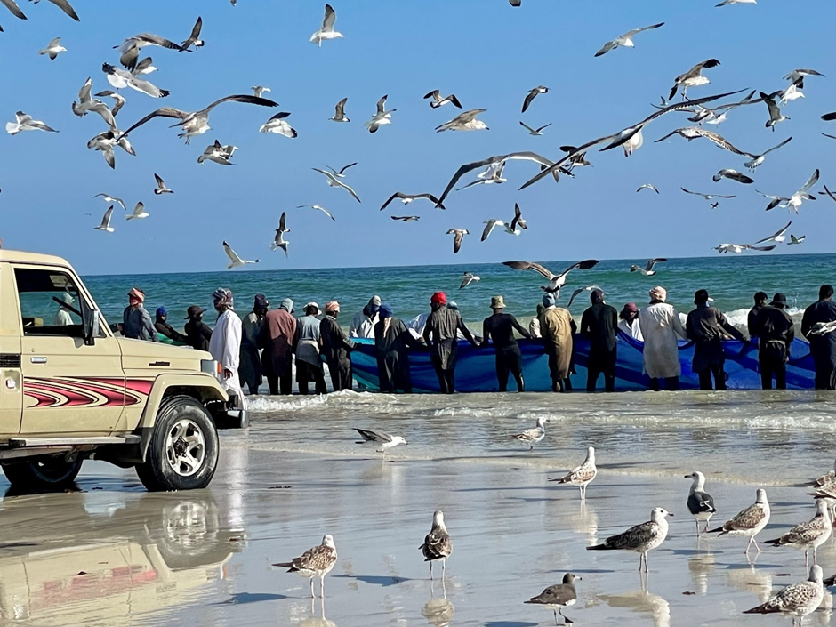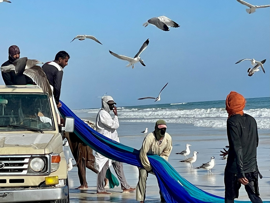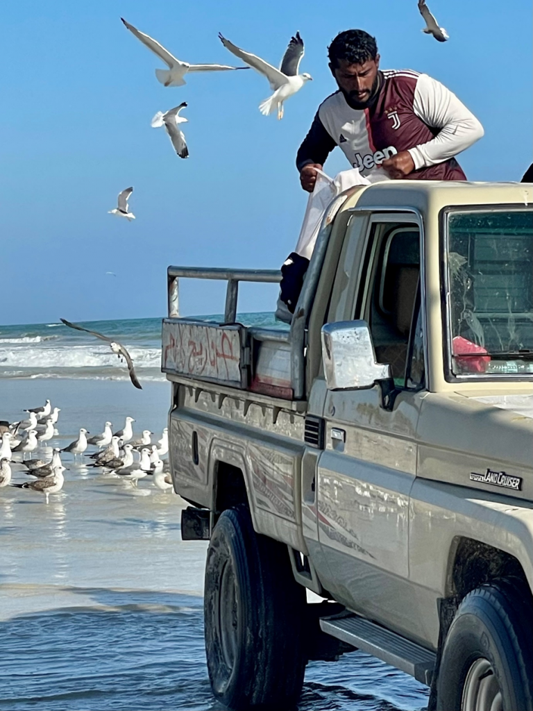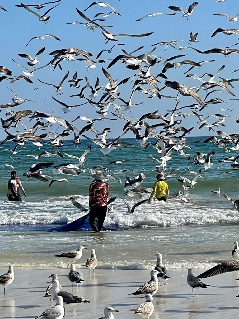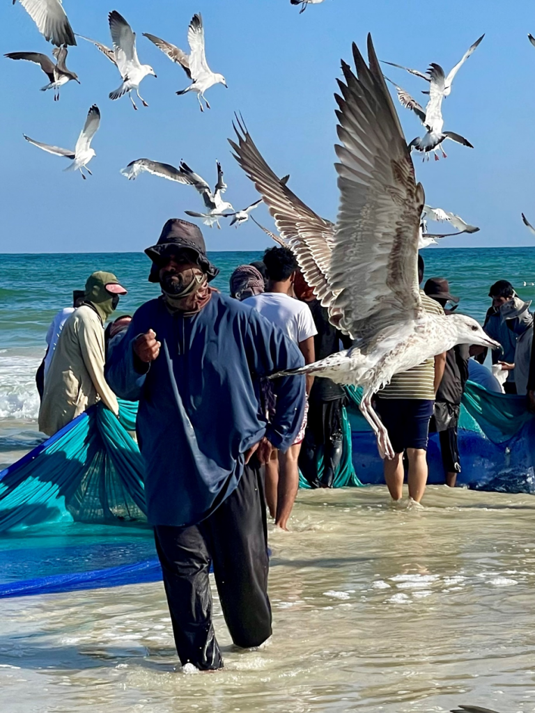 Danach kamen die Fischer und haben ihre Netzte aus dem Wasser geholt. Die Möwen konnten es kaum erwarten, etwas abzukriegen.